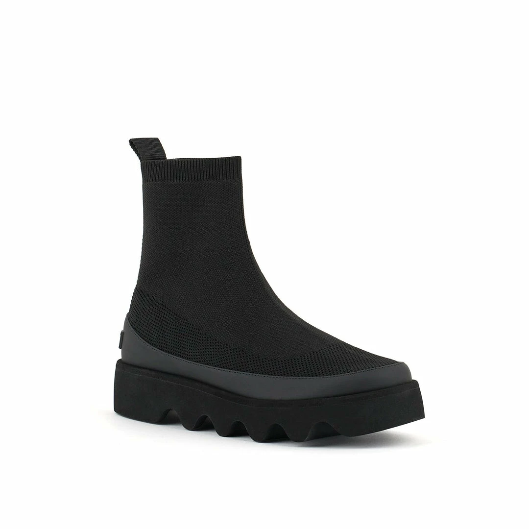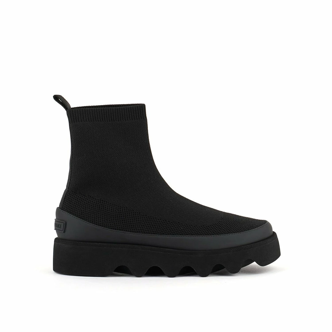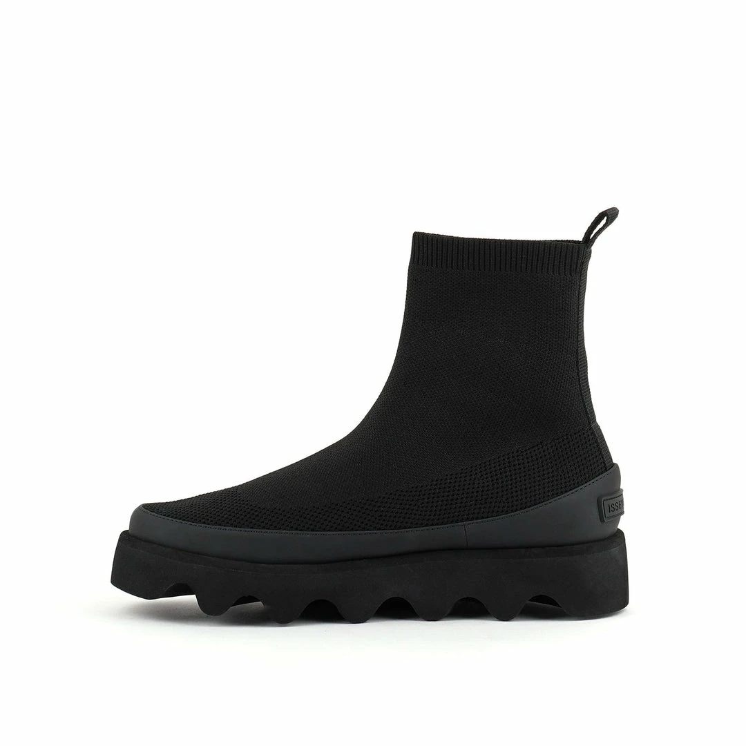 The Bounce Fit Boot is aimed to reflect one of Issey Miyake’s core concepts – comfort. This ankle boot features a chunky outsole that is both light and flexible, and a textile upper. This style features tonal leather detailing, a pull tab at the heel for easy dressing, and features an Issey Miyake logo at the heel.