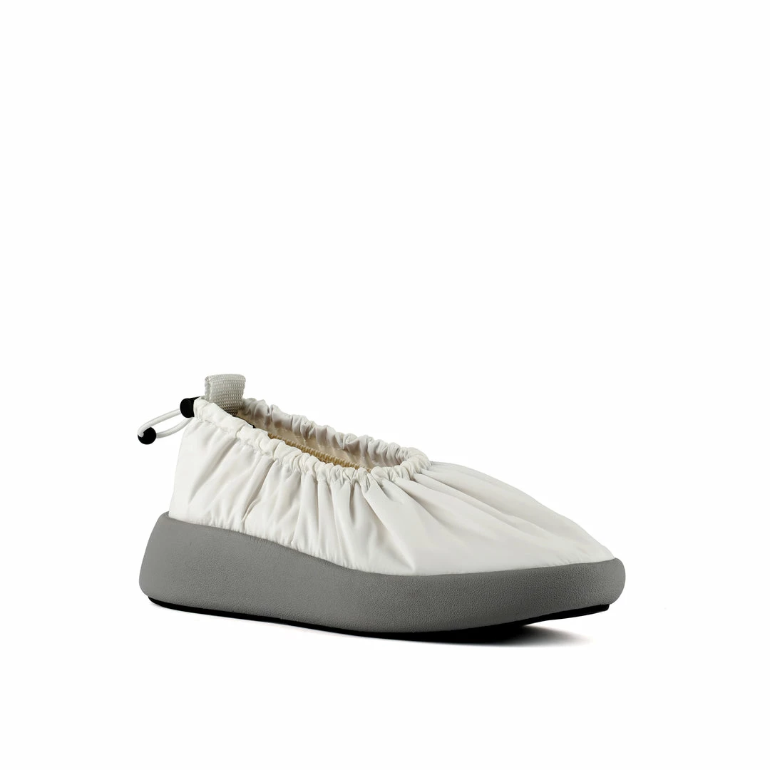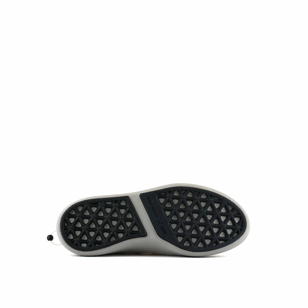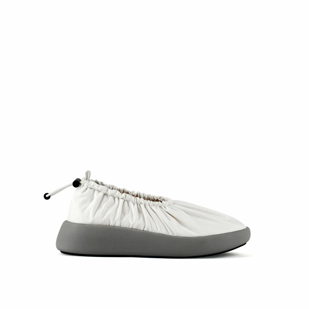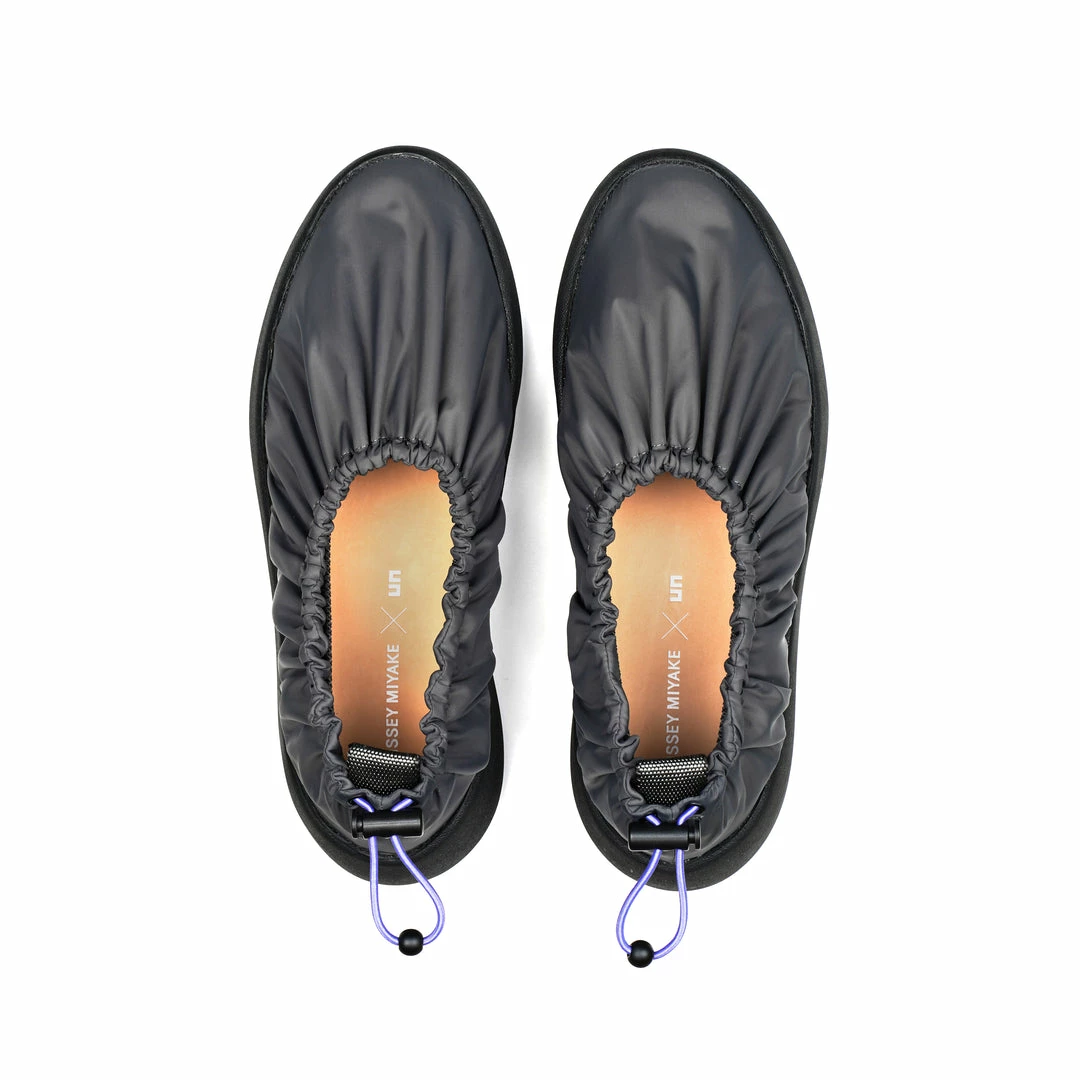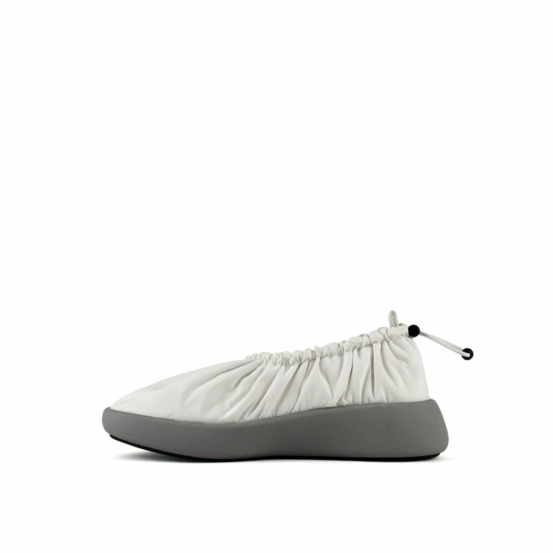 The IMxUN Cover is a round toe slip on sneaker with a nylon fabric upper, a lightweight EVA rubber outsole, and a pull tab at the heel. It features a ruched topline and an adjustable drawstring toggle.