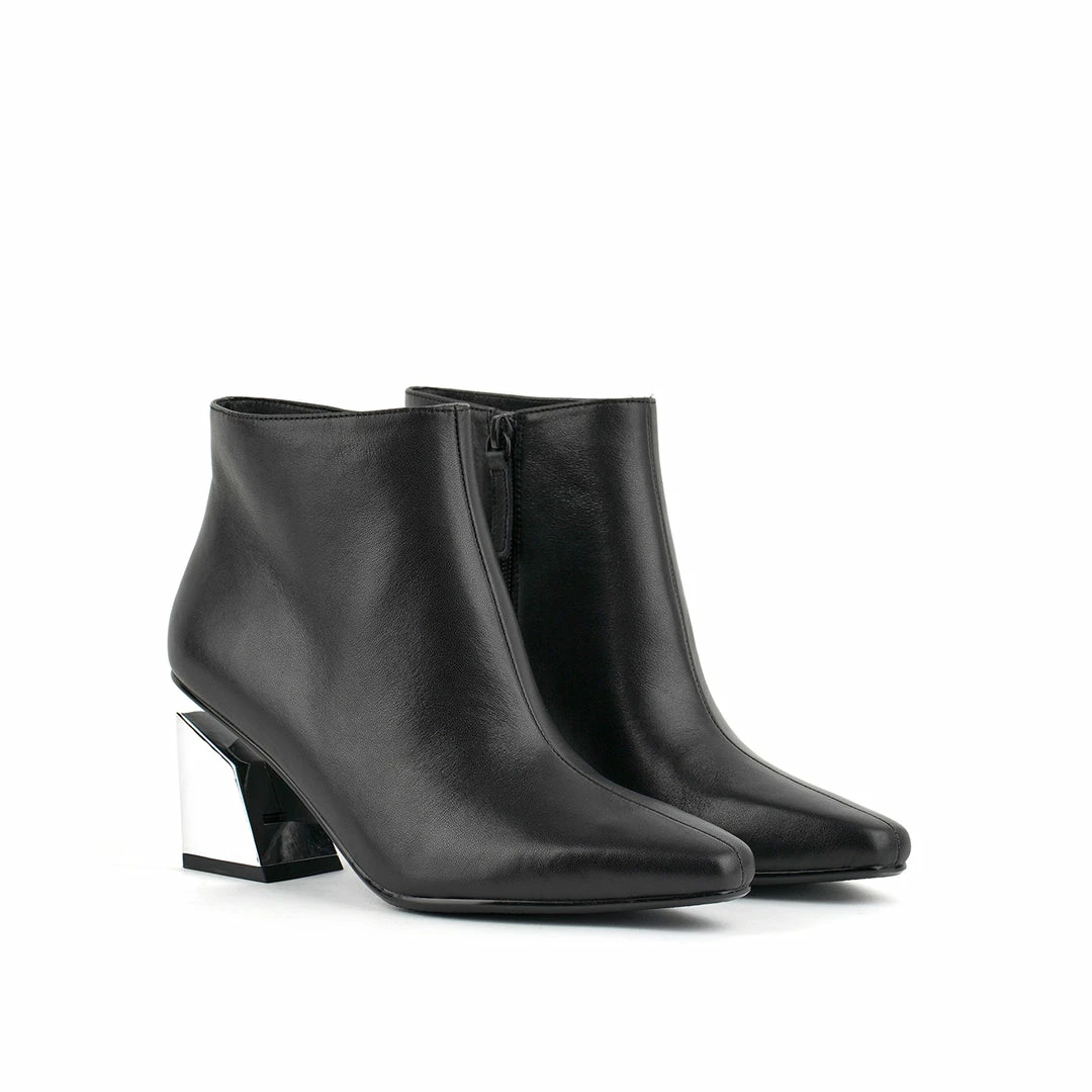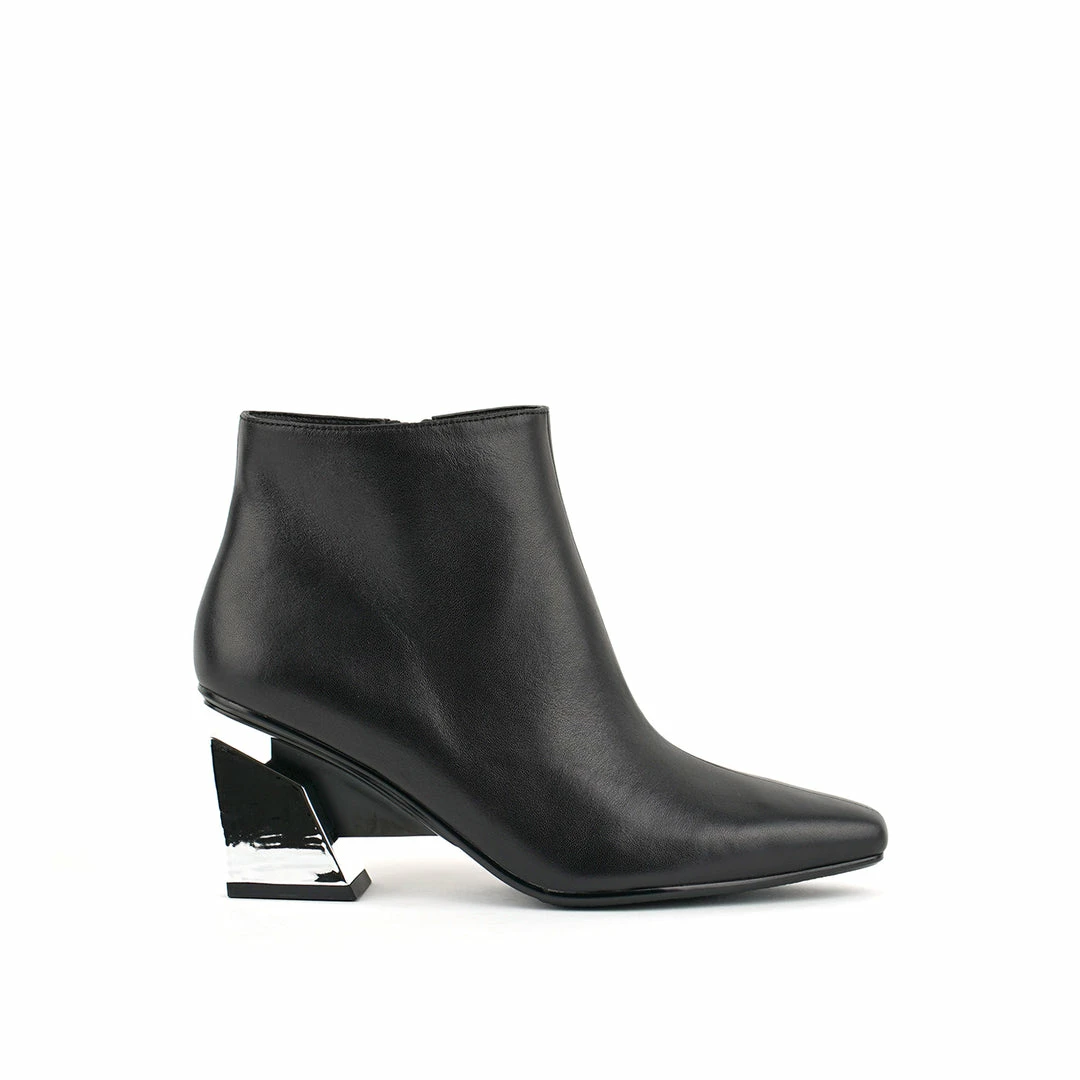 The Arix Bootie is a clean leather bootie on-top a stone-like mid-height heel. Its distinctive geometric heel makes it the ideal style to elevate any look. This style is part of the Art Group collection, representing simple upper silhouettes combined with carefully designed heels that speak to United Nude’s bold aesthetic.