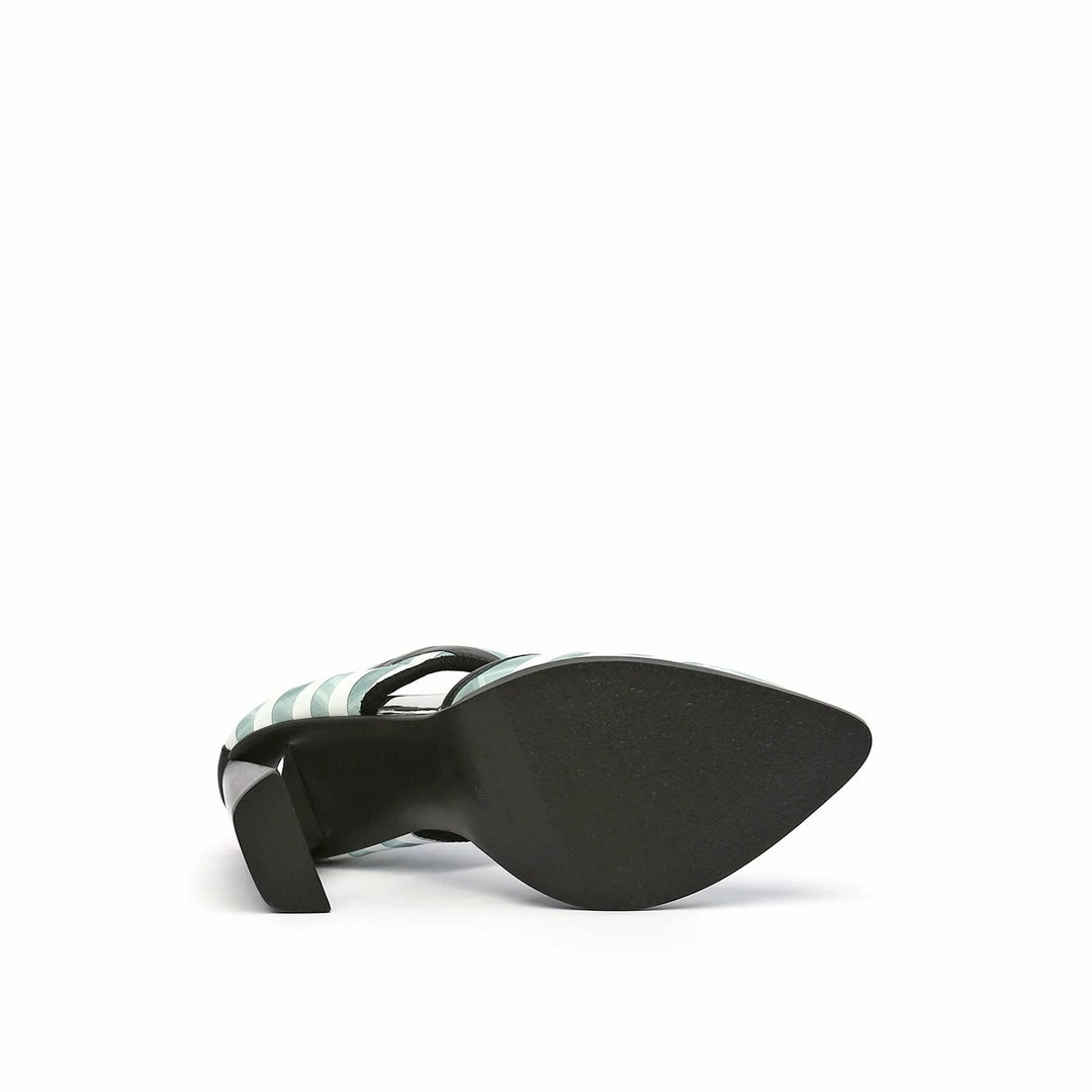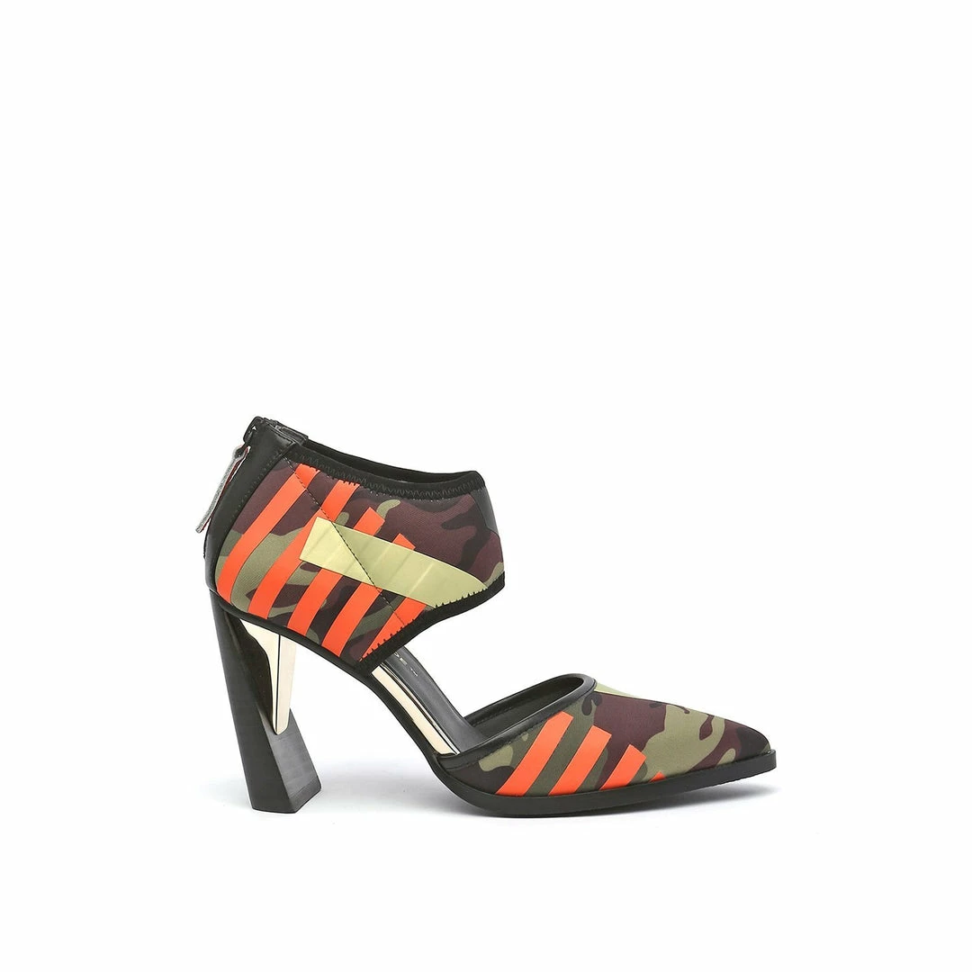 The d’orsay Calli is a pointy toe high heel fabricated with a comfortable neoprene upper and is perched atop a tapering stacked leather block heel.