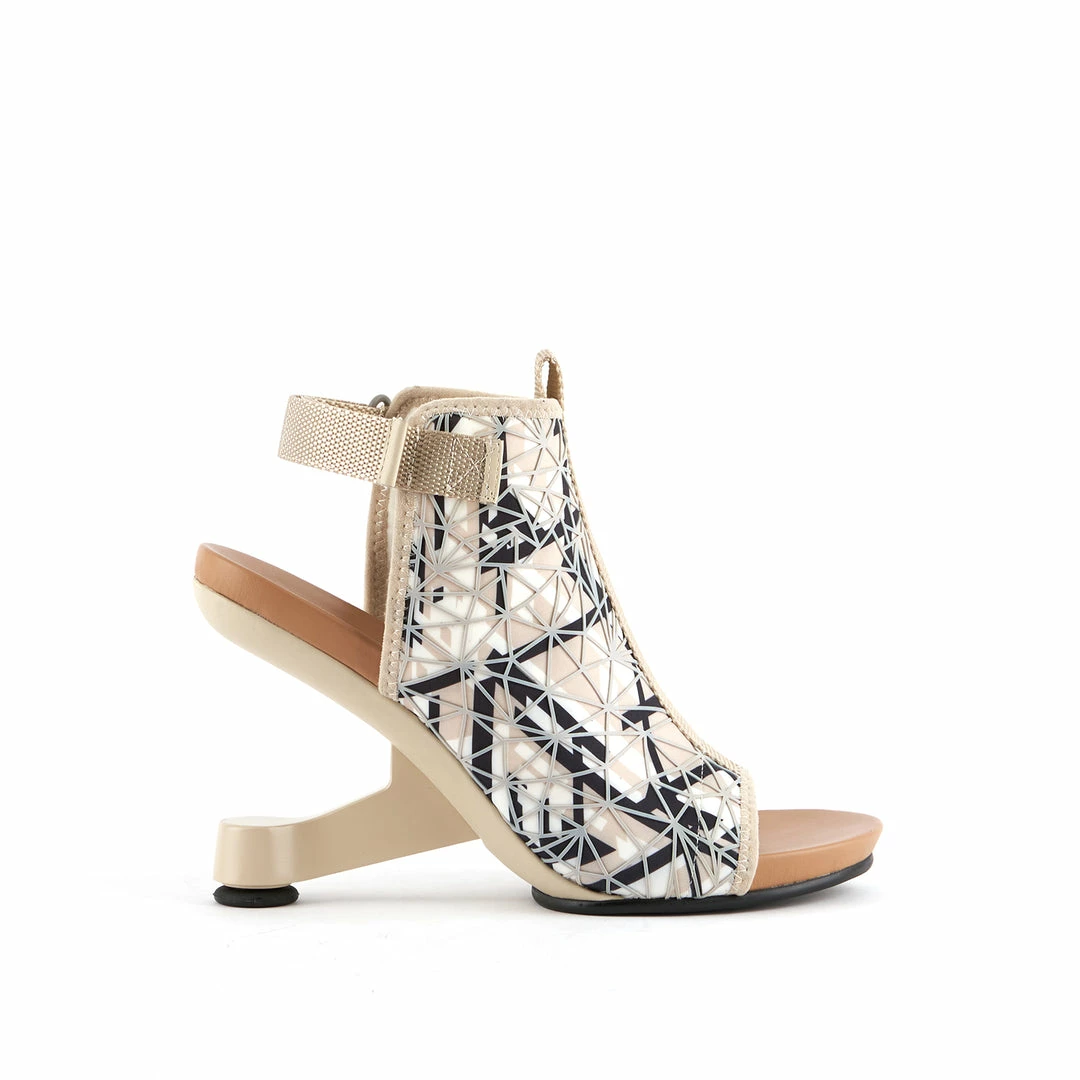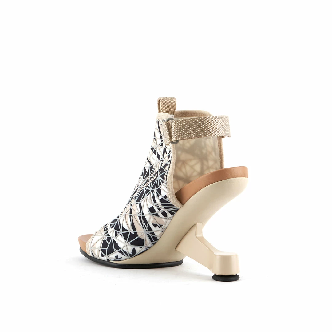 The Eamz Fab is an easy-to-wear, dressy high heel, presenting a simple silhouette and a silicon-printed upper with a functional d-ring side closure. The heel is inspired by the classic Eames lounge chair – an icon of Modern design.
