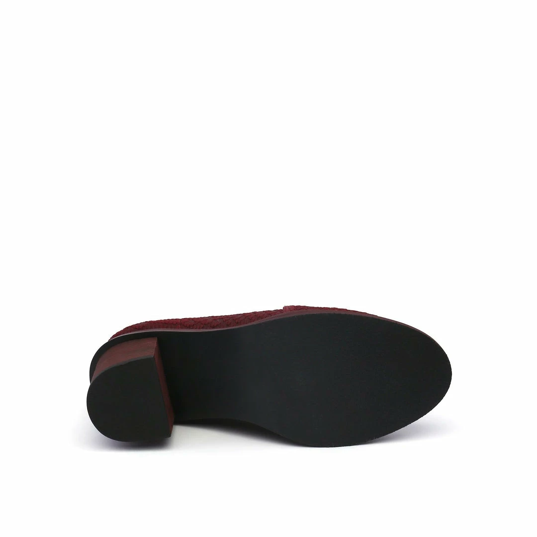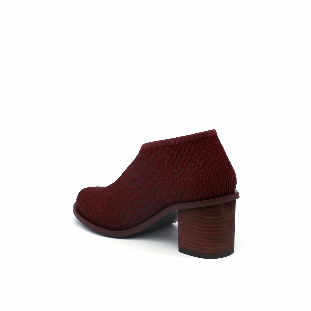 The Fold Base is a slip on mid-heel ankle boot with a chunky leather stacked heel and comfortable elasticized upper.