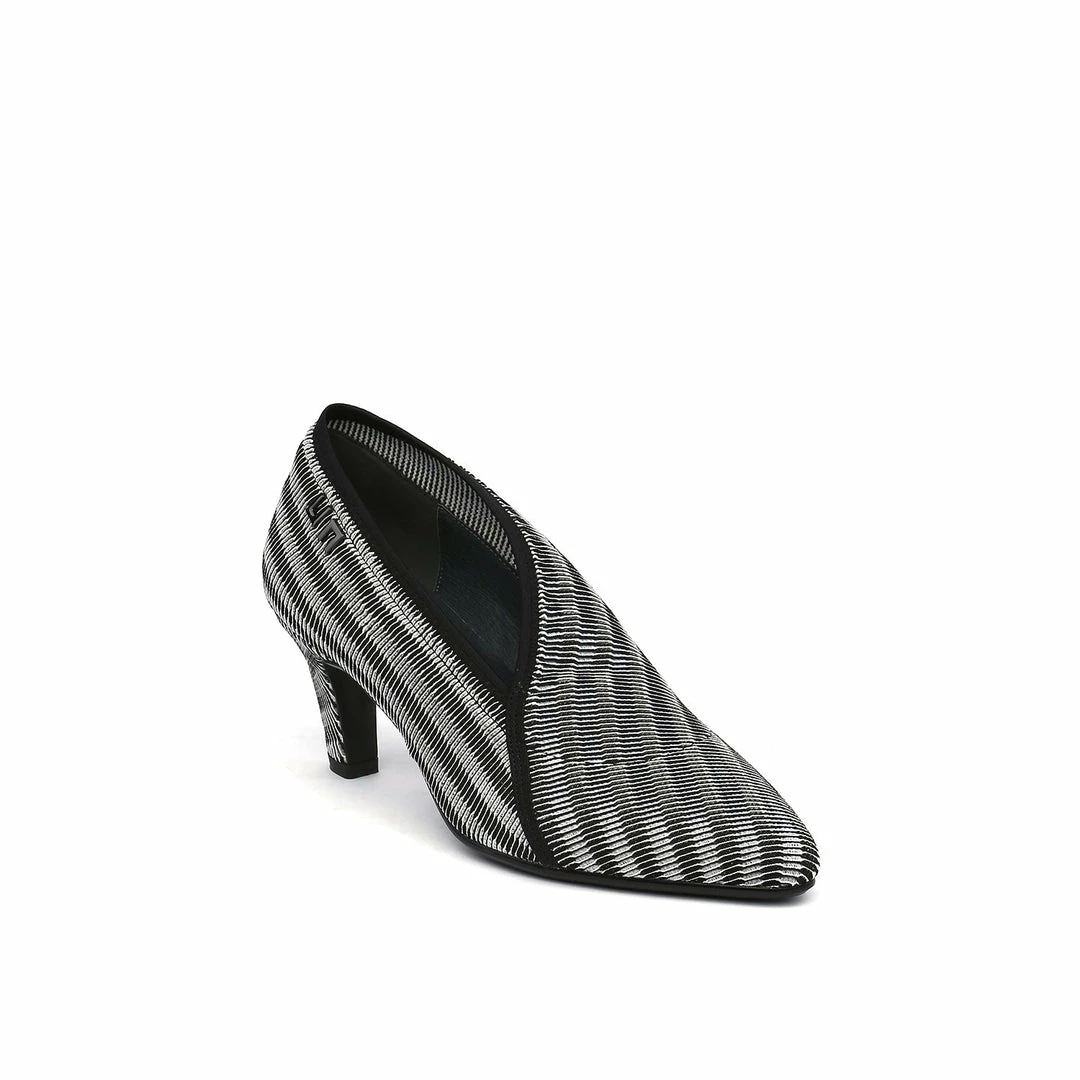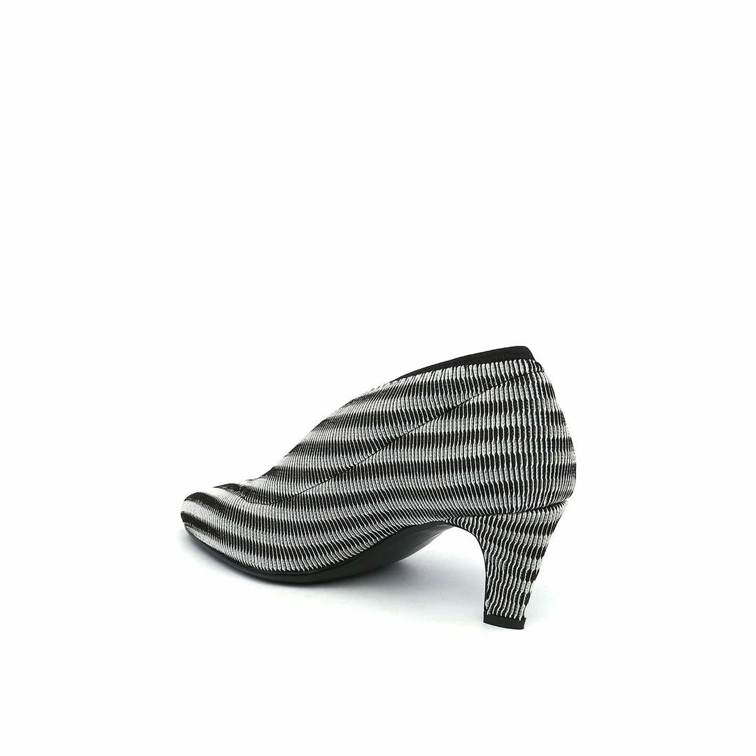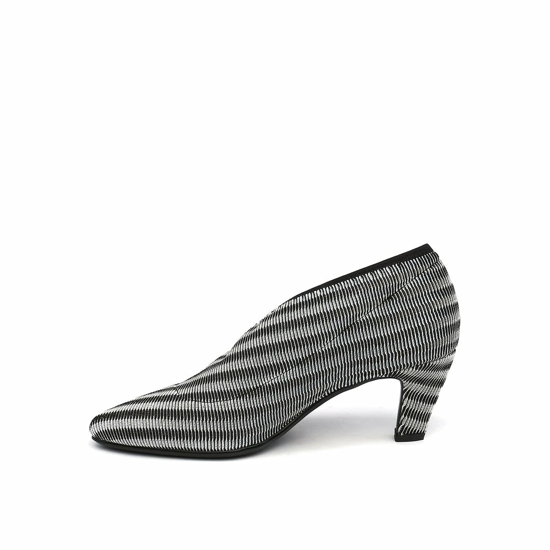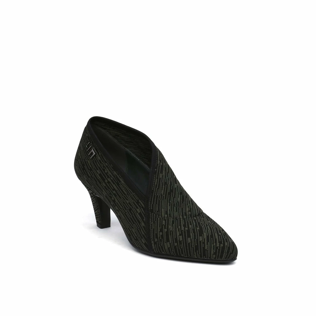 The Fold Lite Mid is a mid-heel ankle bootie with a soft almond toe and asymmetrical top line.