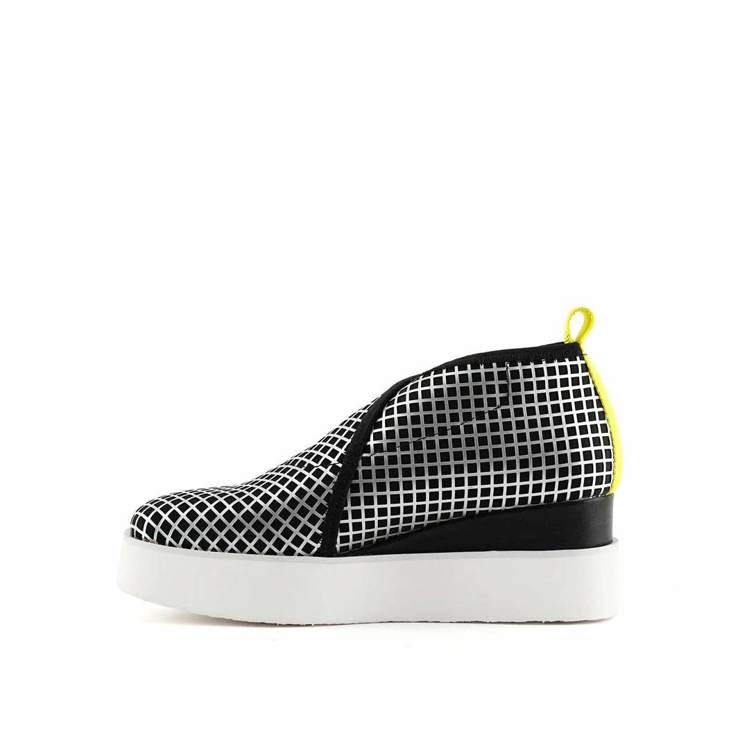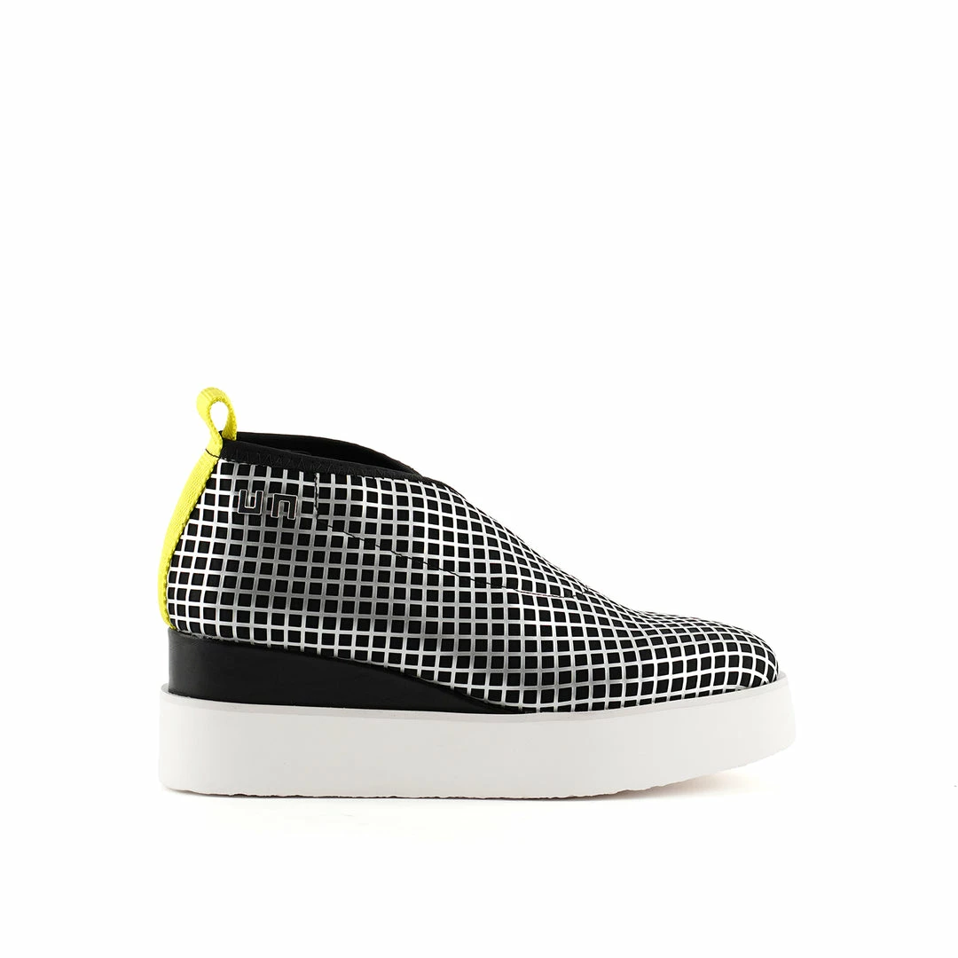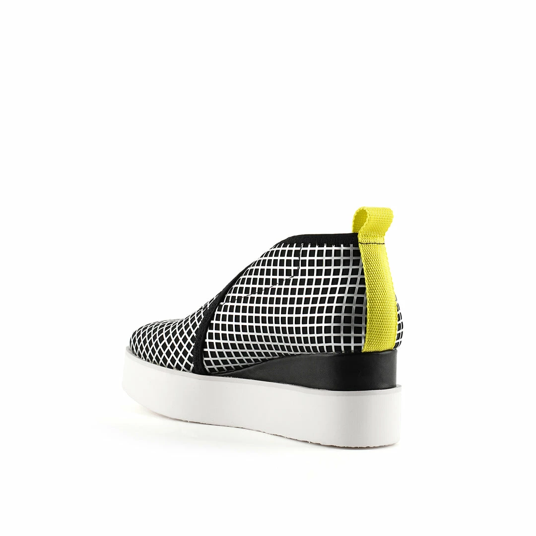 The Fold Stella Lo is an easy slip-on style that combines UN’s elasticized upper with a soft square toe shape, leather-wrapped wedge, and textured rubber sole. This style is the ultimate combination of comfort and smart design.