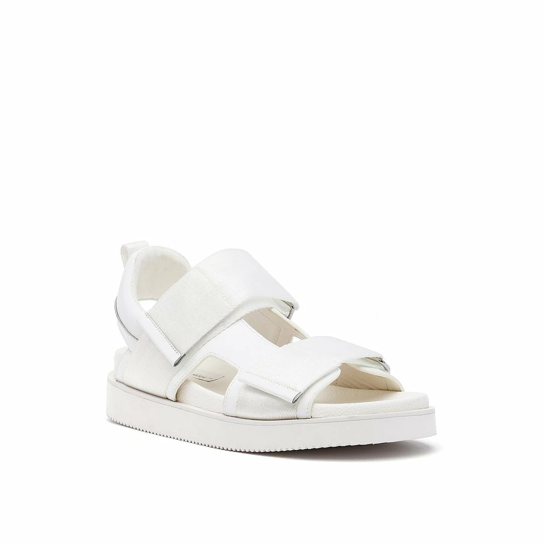 The Geo Sandal Mens is a leather sandal designed by paring down a simple sport runner silhouette. The bold double straps outfitted with velcro, soft padded counter strap and contoured footbed take the form of a stylish sandal with the comfort of a sneaker.