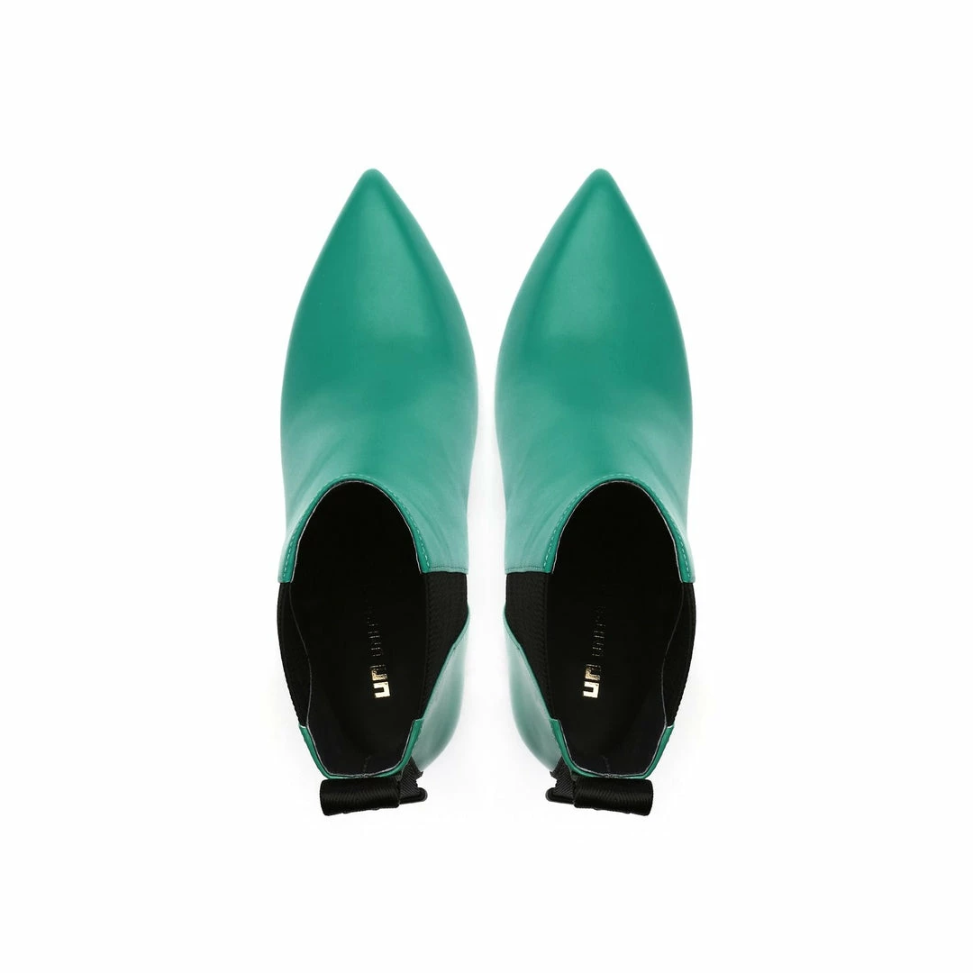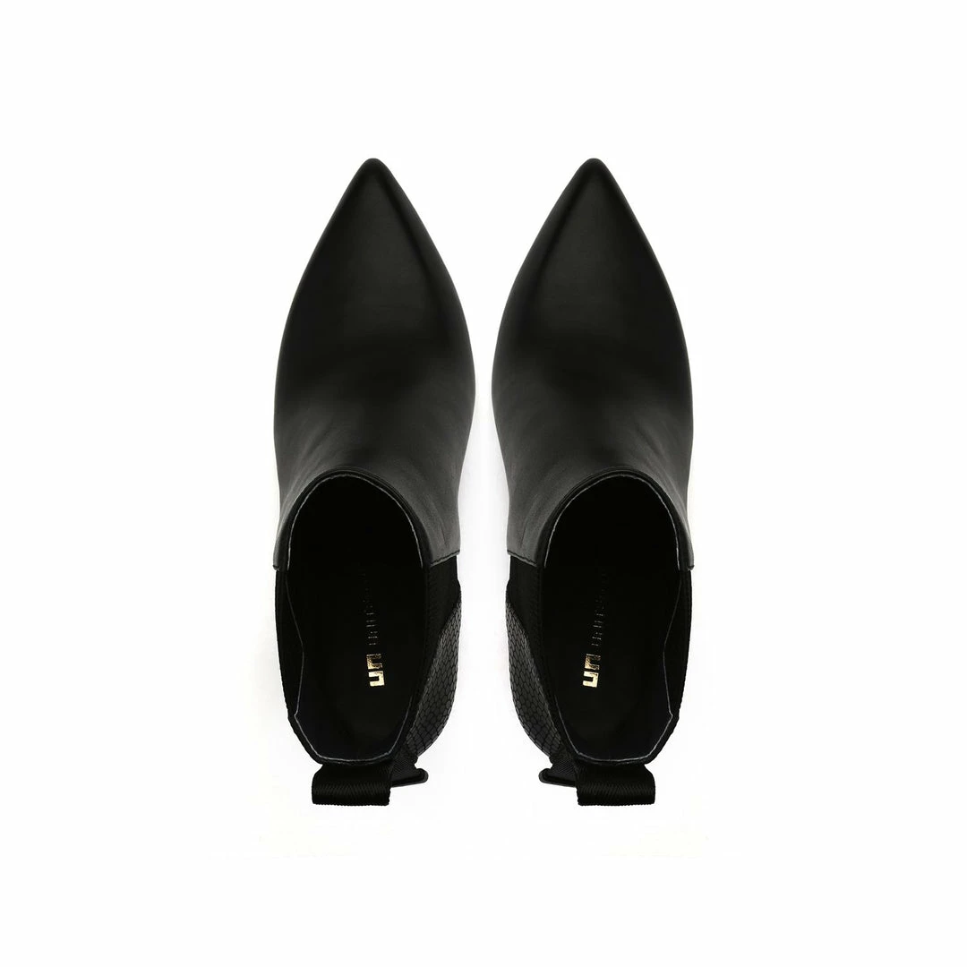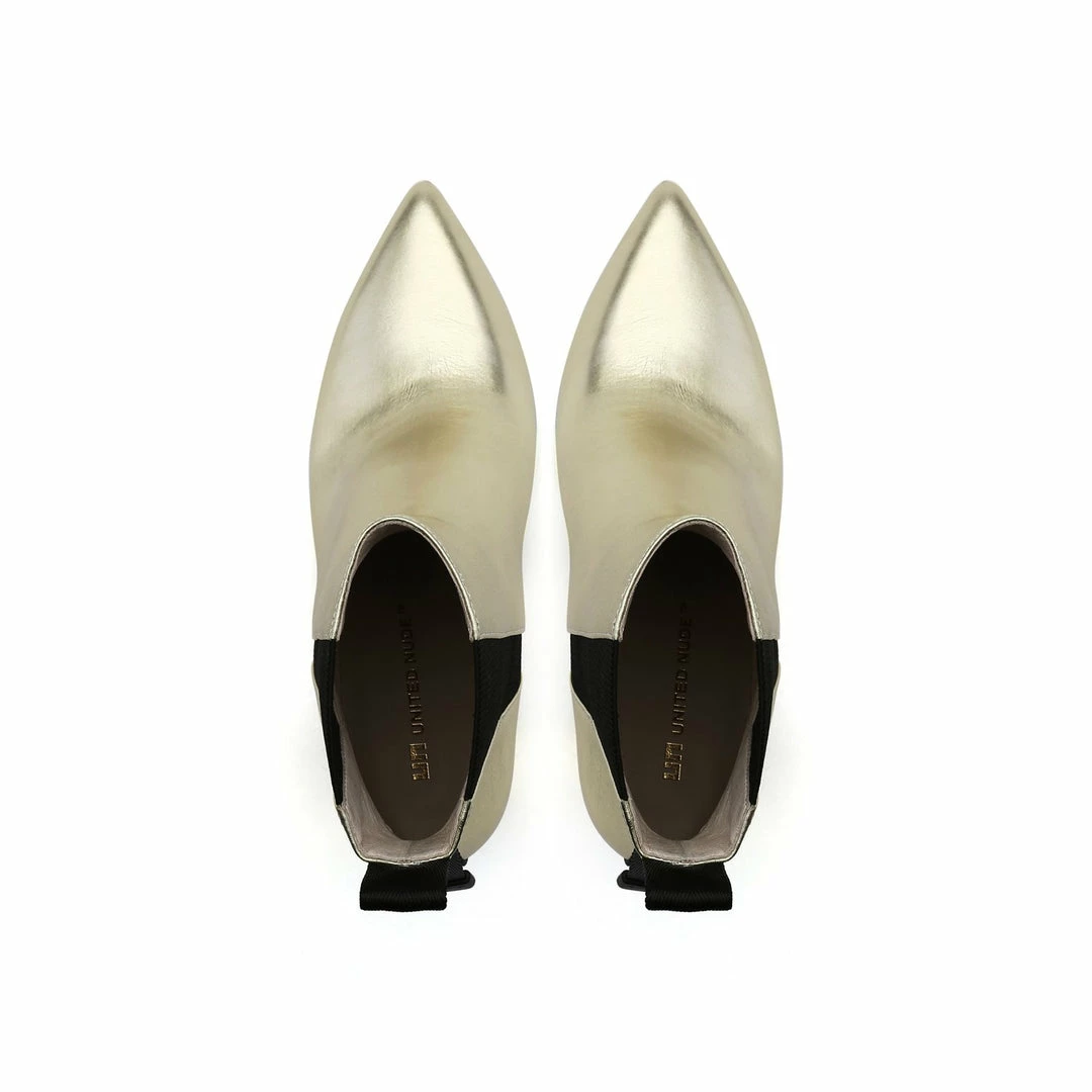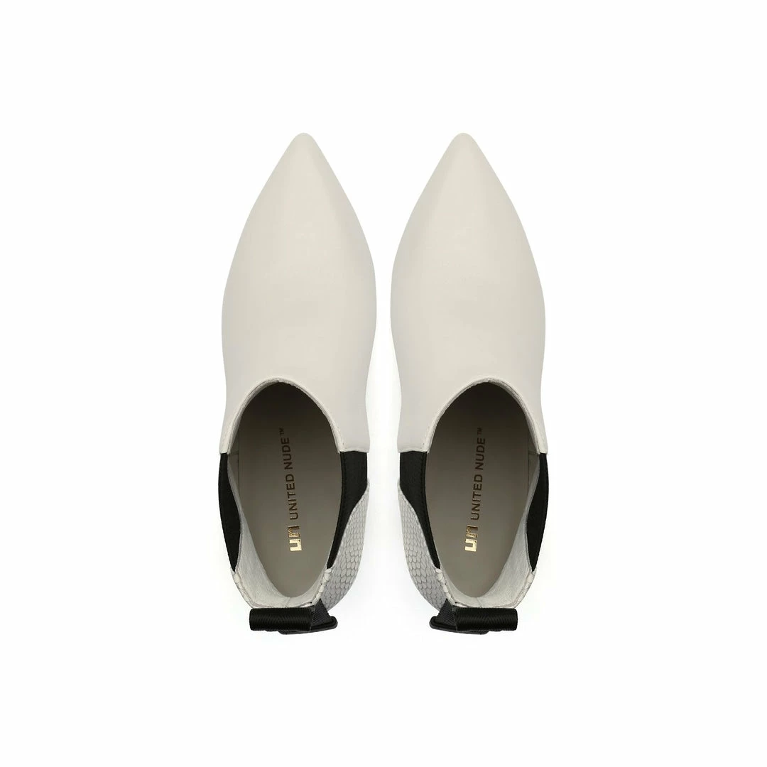 The LEV Tek Bootie Hi is a pointy-toe high heel that is lifted by an angular high heel and cleated rubber platform. Rear pull straps and a triangular elastic panel fortify the style while adding functionality.
