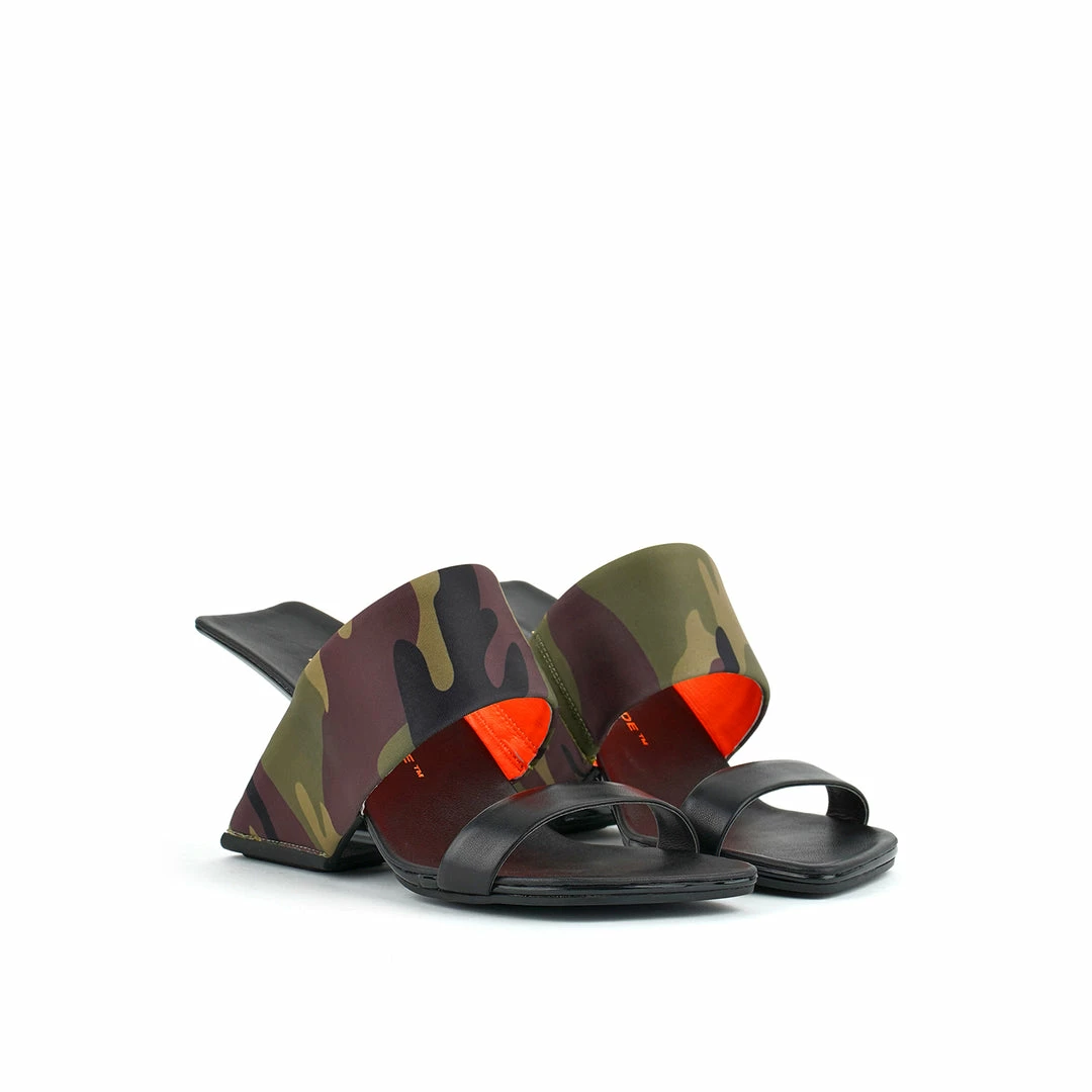 The Loop Hi is a high heel square toe sandal inspired by a loop that encompasses the foot by its upper and heel, giving the effect of floating heel. The expertly designed footbed and elastic on the inner area of the leather strap provides a comfortable and secure fit.