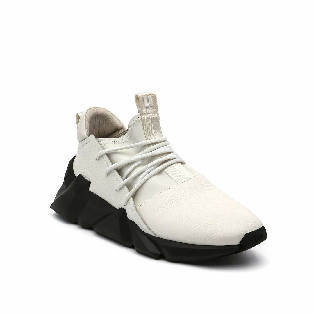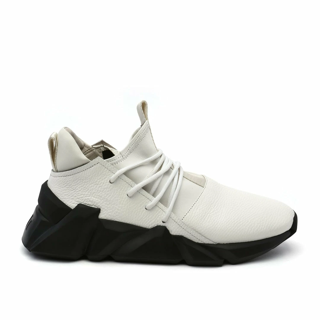 The Space Kick Bold Mens is leather sneaker that sits atop a chunky EPR outsole. Angled lines are chiseled into the sole, leaving a graphic sculptural relief.