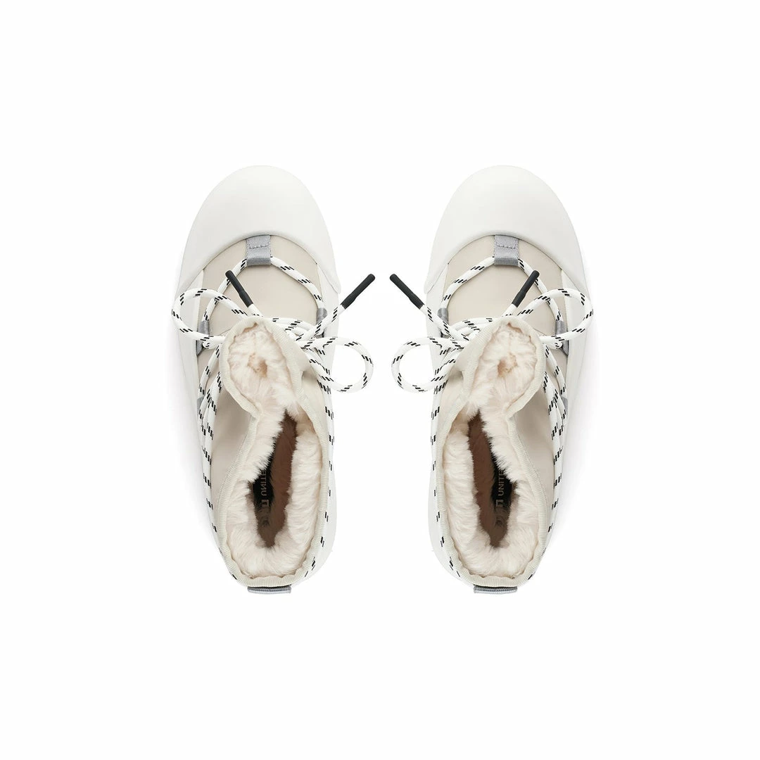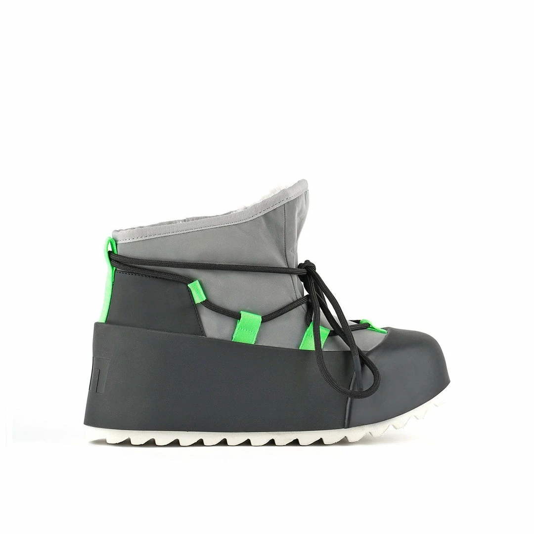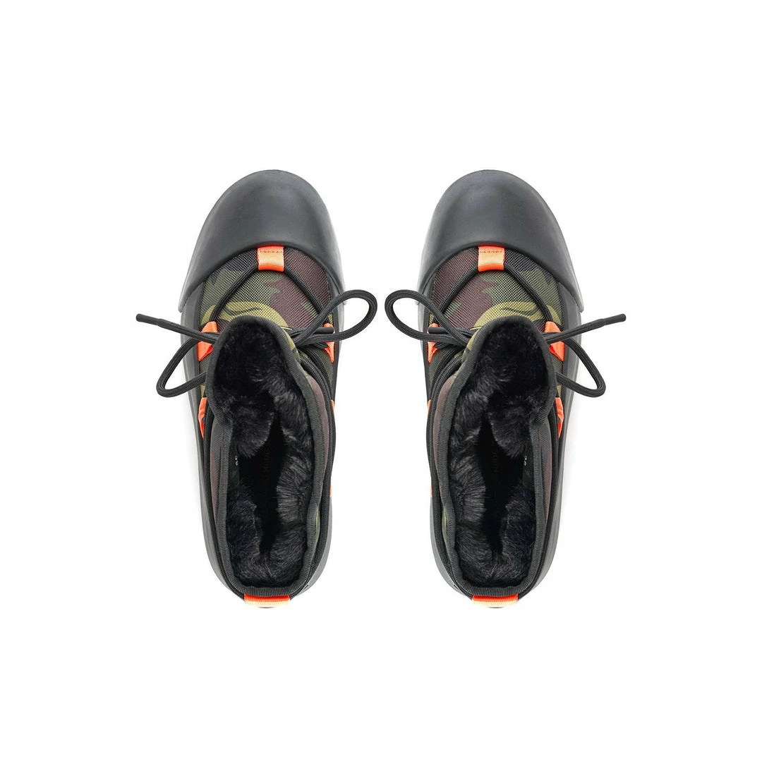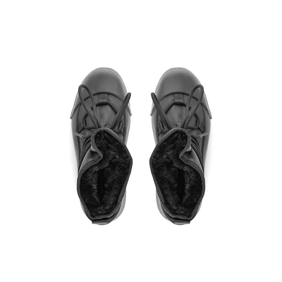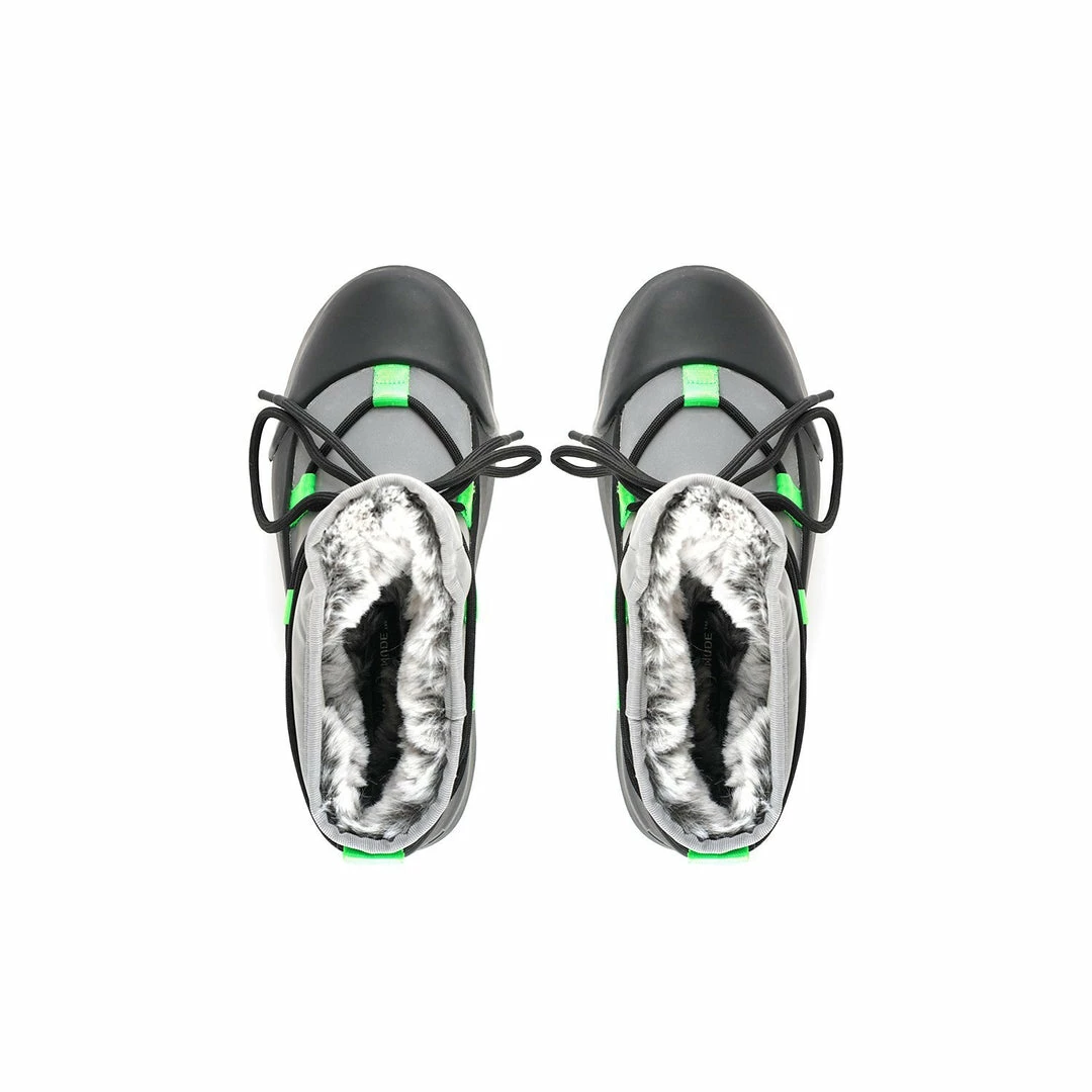 The Polar Bootie is cold weather bootie. A dominating waterproof outsole grounds the adjustable upper with a plush eco fur lining.