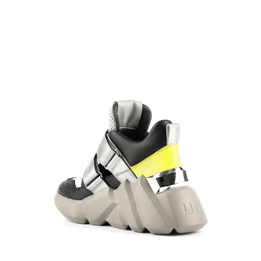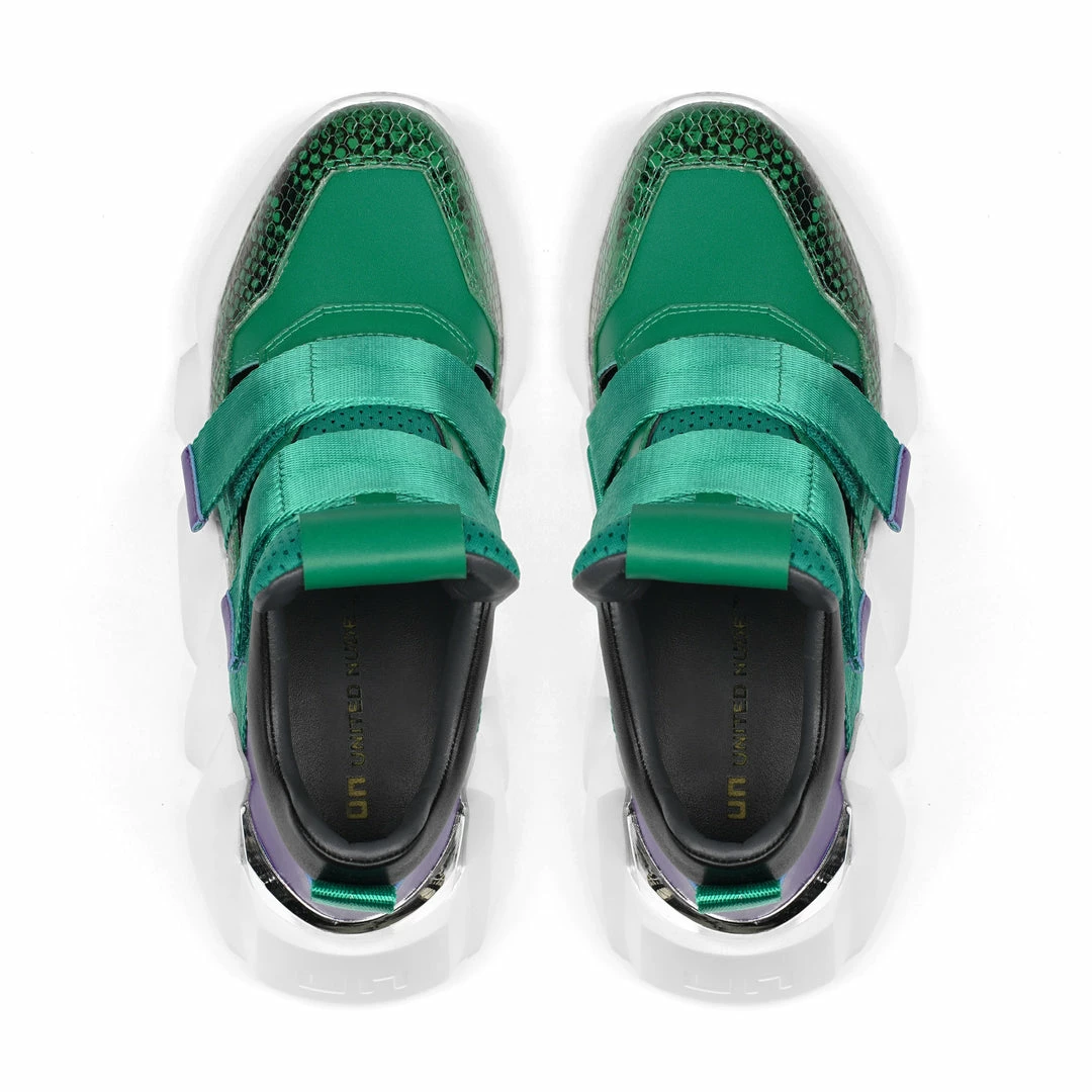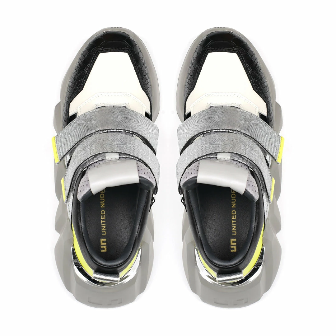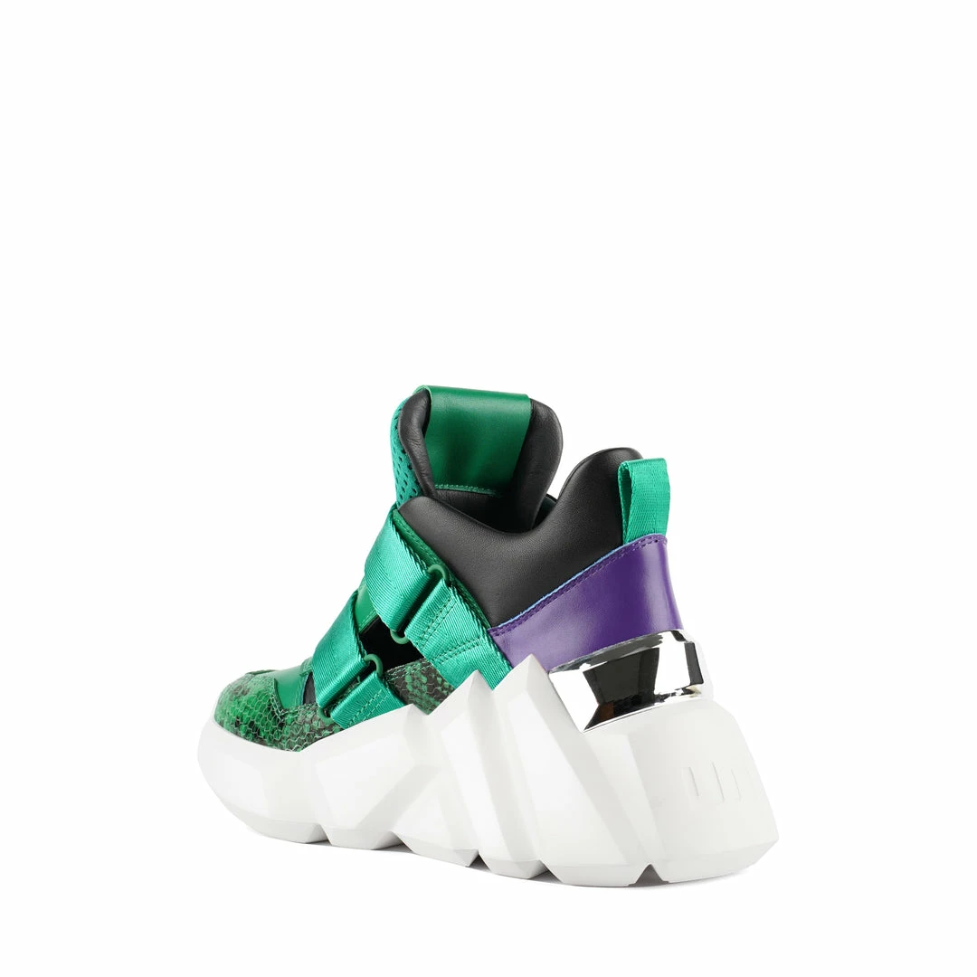 The Space Kick Summer is a cutout sneaker with a statement wedge sole. The chunky EPR outsole soars into the double velcro enclosure upper with breathable cutout details.