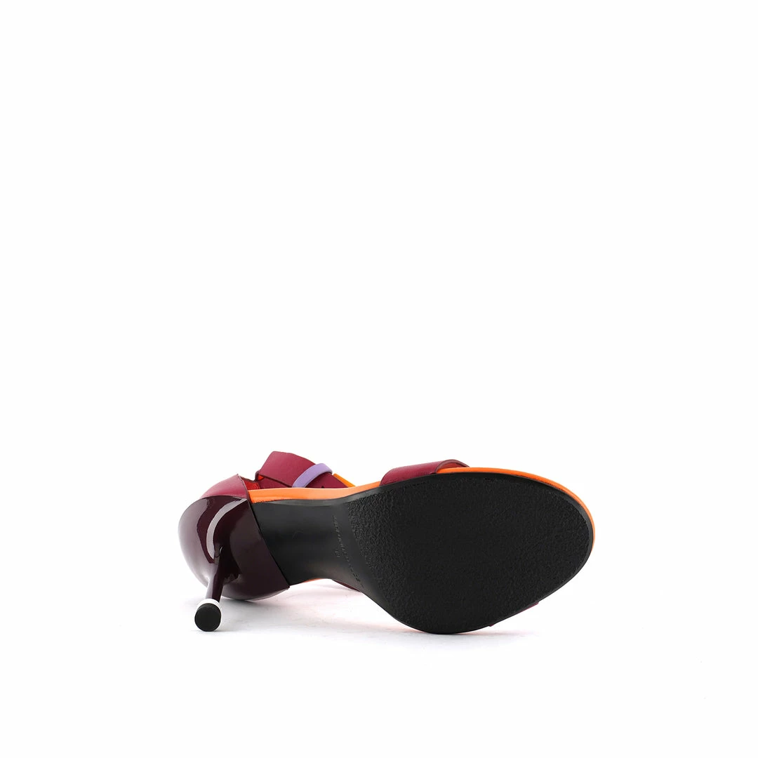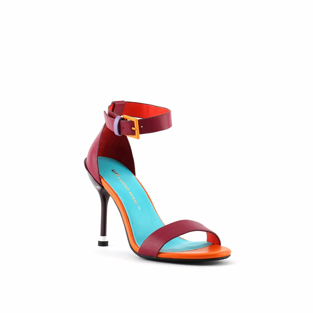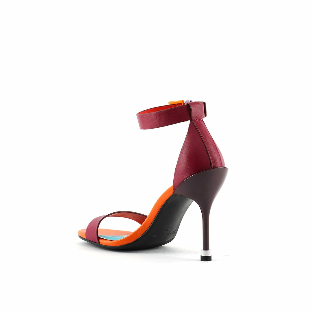 The Square Ankle Strap is a high heeled stiletto with a stacked heel tip and a slim adjustable leather ankle strap.