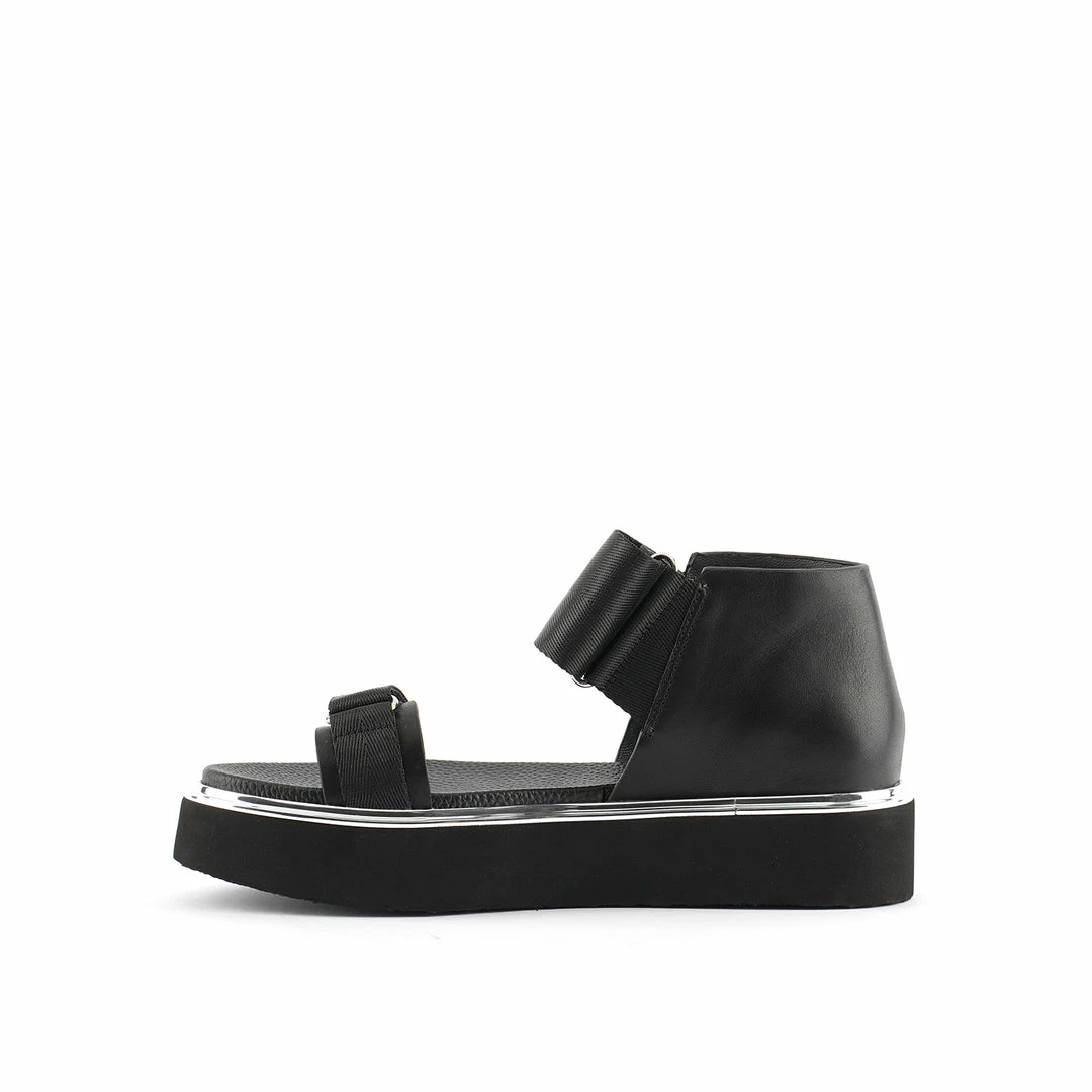The Vita Sandal Lo is a flatform sandal with two adjustable nylon + velcro strap enclosures. The look is completed with a slim metallic outlining the foam rubber outsole.
