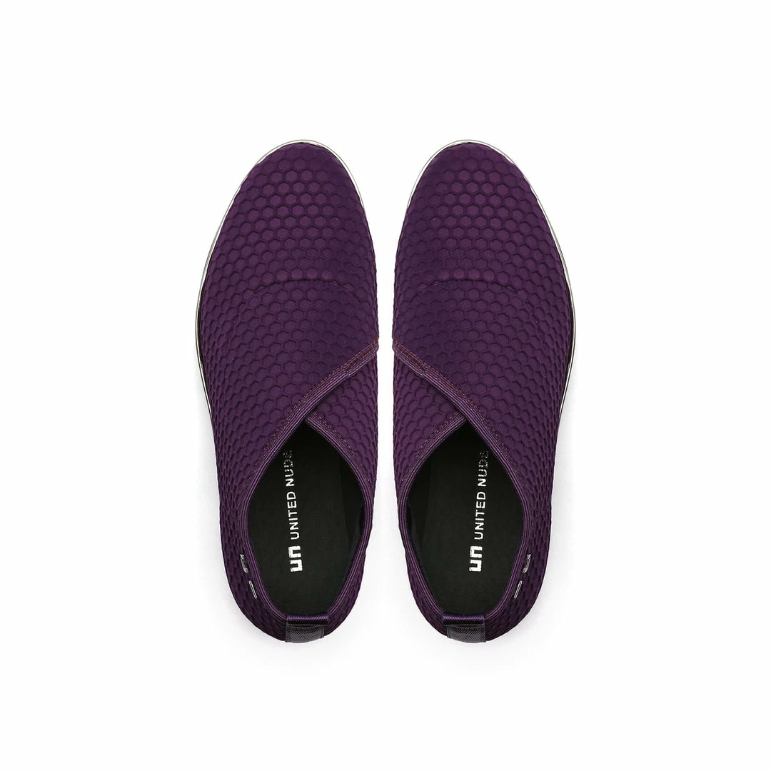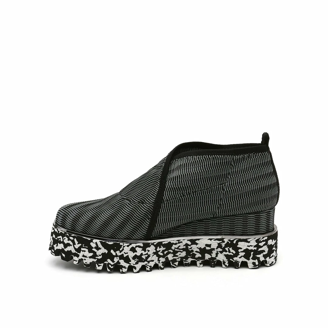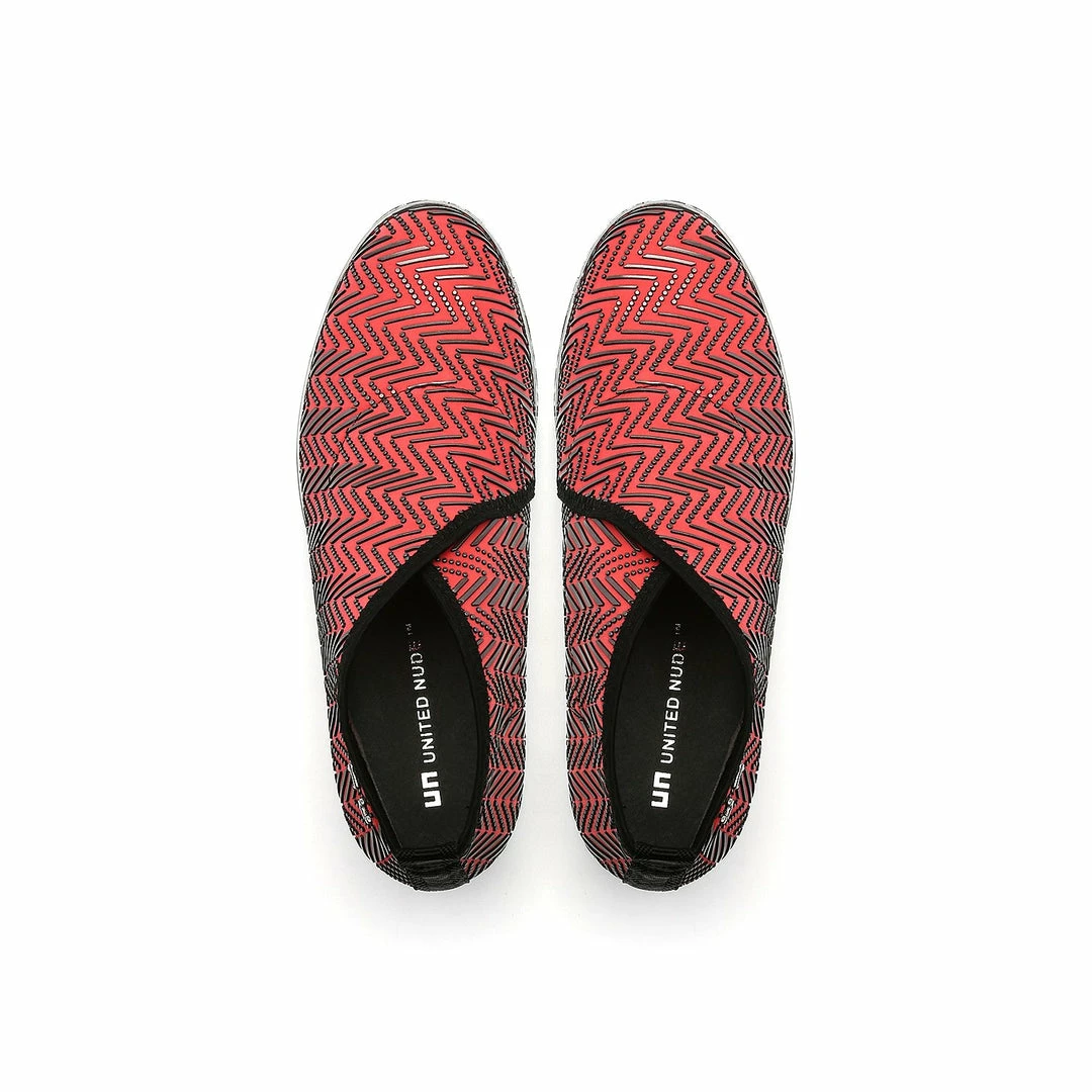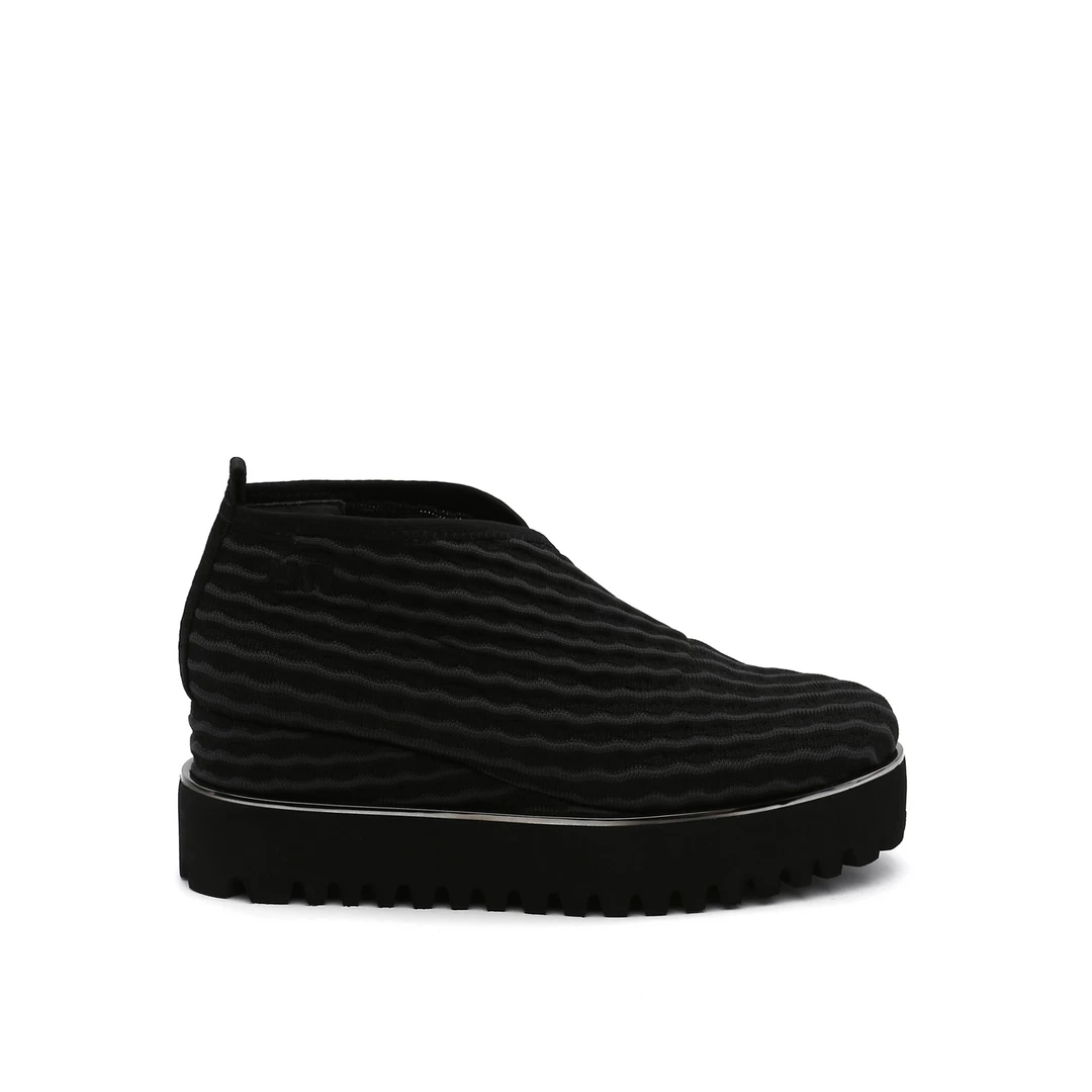 The Fold Casual II is a flatform slip on with an asymmetrical topline and cleated platform outsole. An exposed wedge adds a gentle lift to these metallic trimmed shoes.