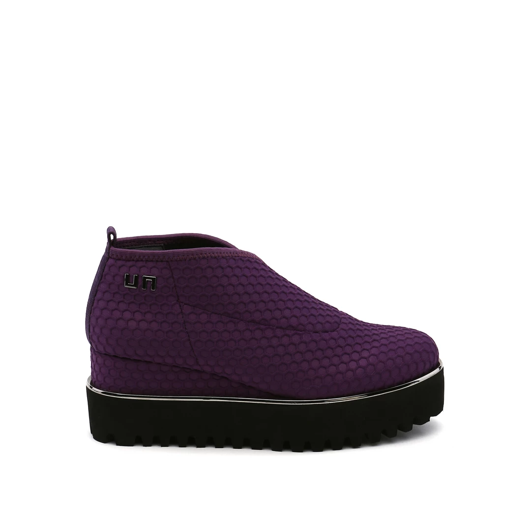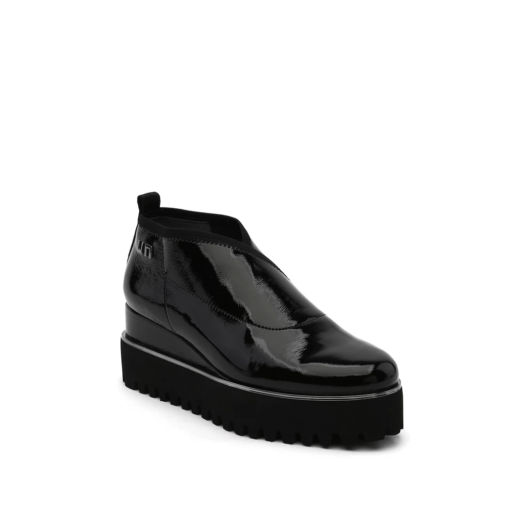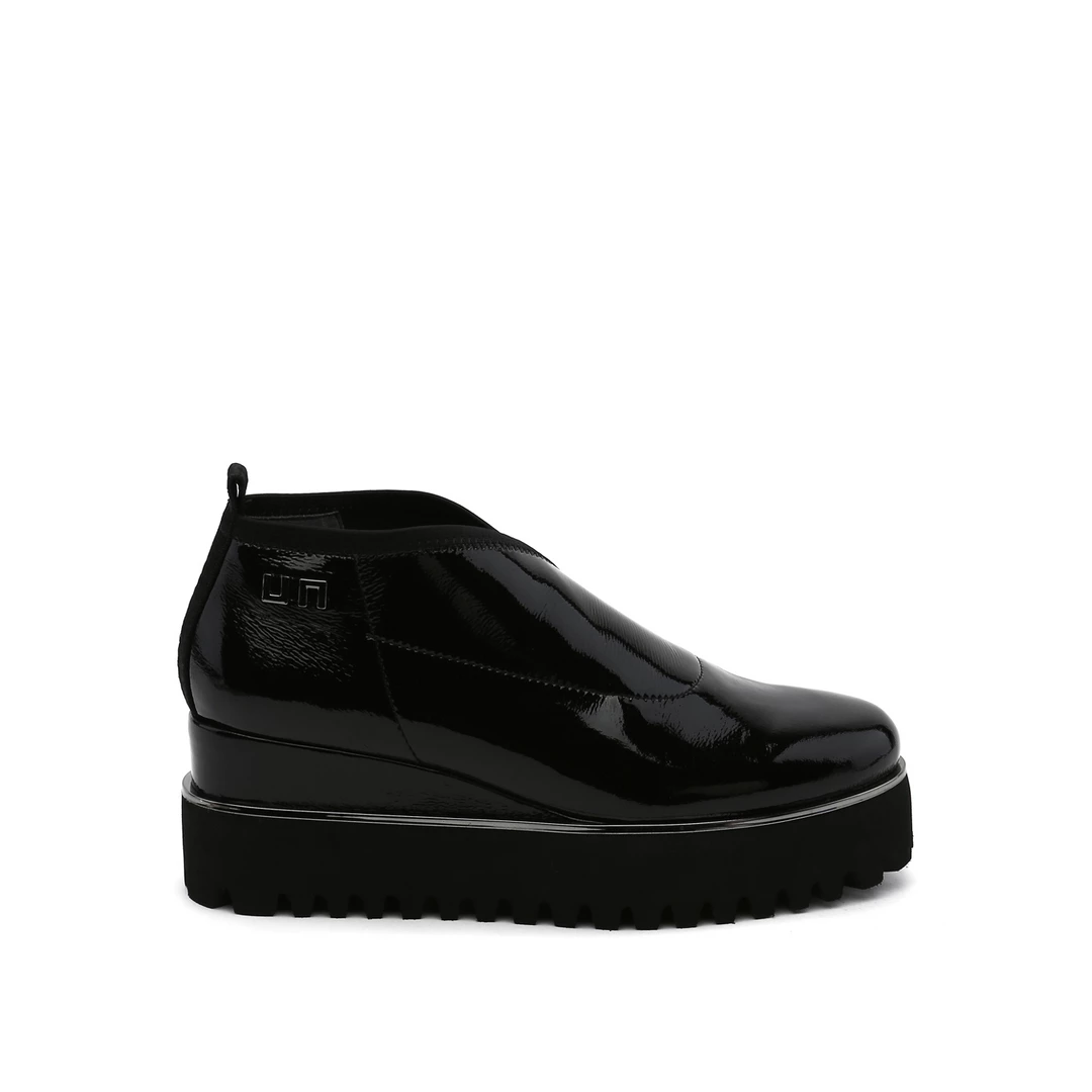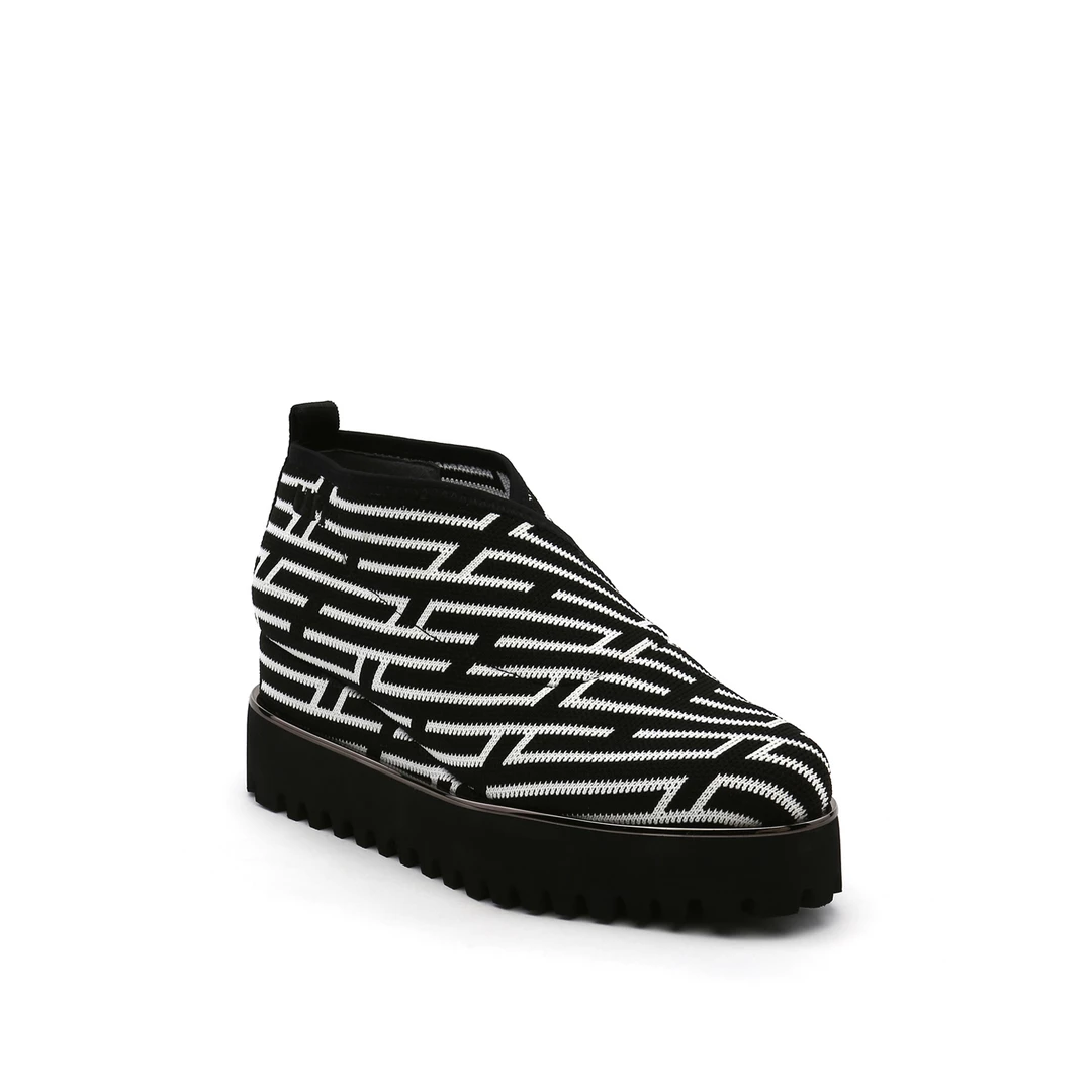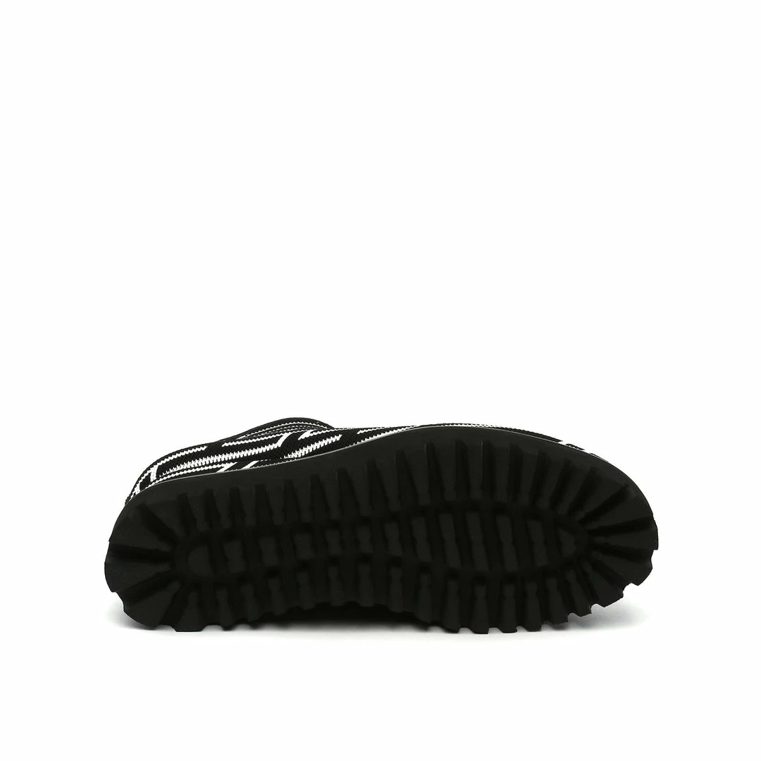 The Fold Casual II is a flatform slip on with an asymmetrical topline and cleated platform outsole. An exposed wedge adds a gentle lift to these metallic trimmed shoes.