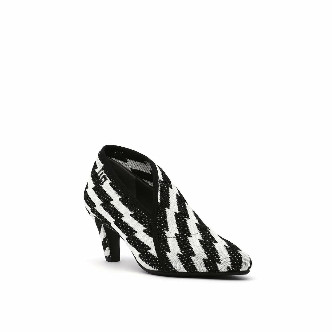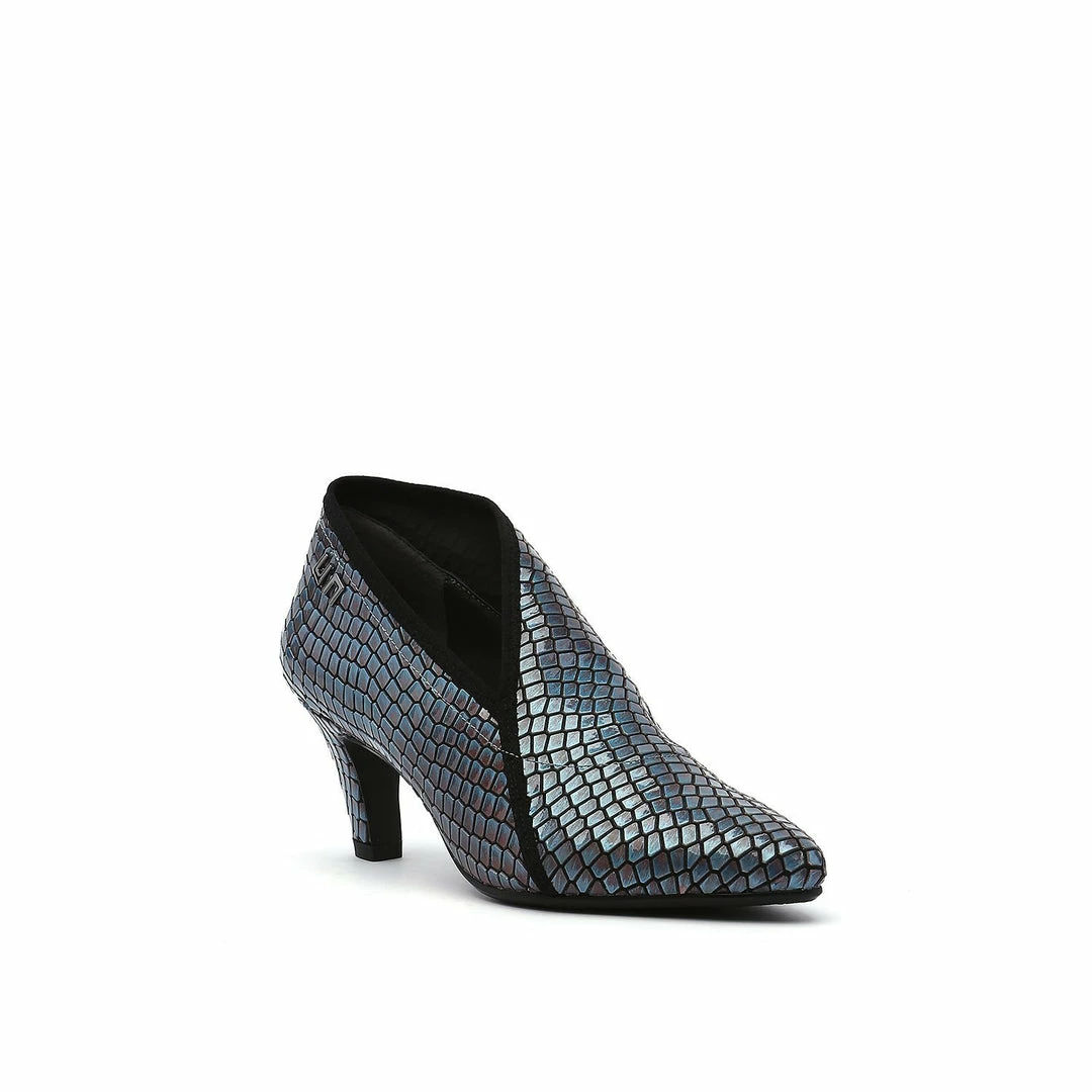 The Fold Lite Mid is a mid-heel ankle bootie with a soft almond toe and asymmetrical topline.