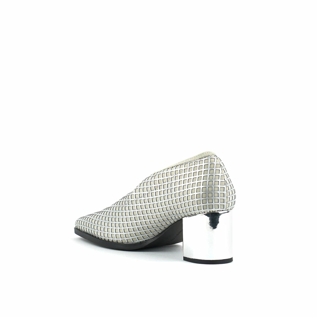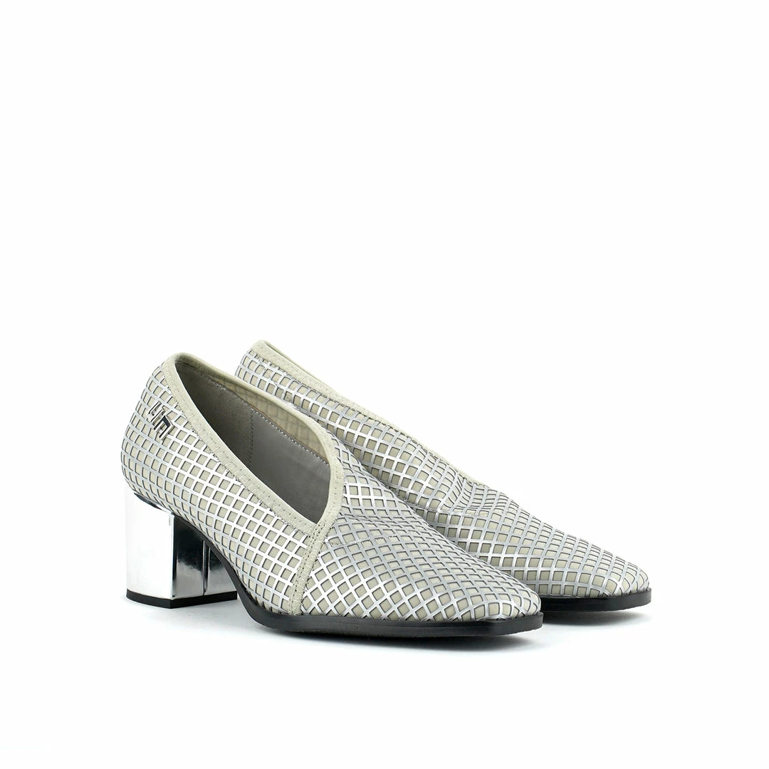 The Fold Stella Mid is an easy slip-on style with a soft square toe and an asymmetric design on a block heel. This style is the ultimate combination of comfort and smart design, using elasticized fabric and monochromatic embroidery for a modern design.