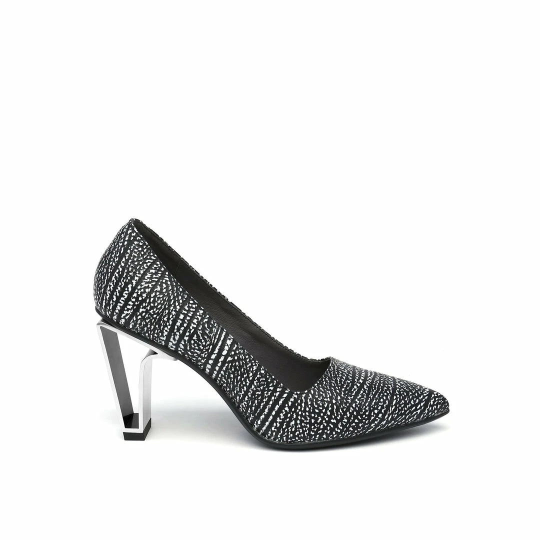 The Icon Pump Hi is an elegant and minimal pointed toe pump with a luxe mirrored heel.