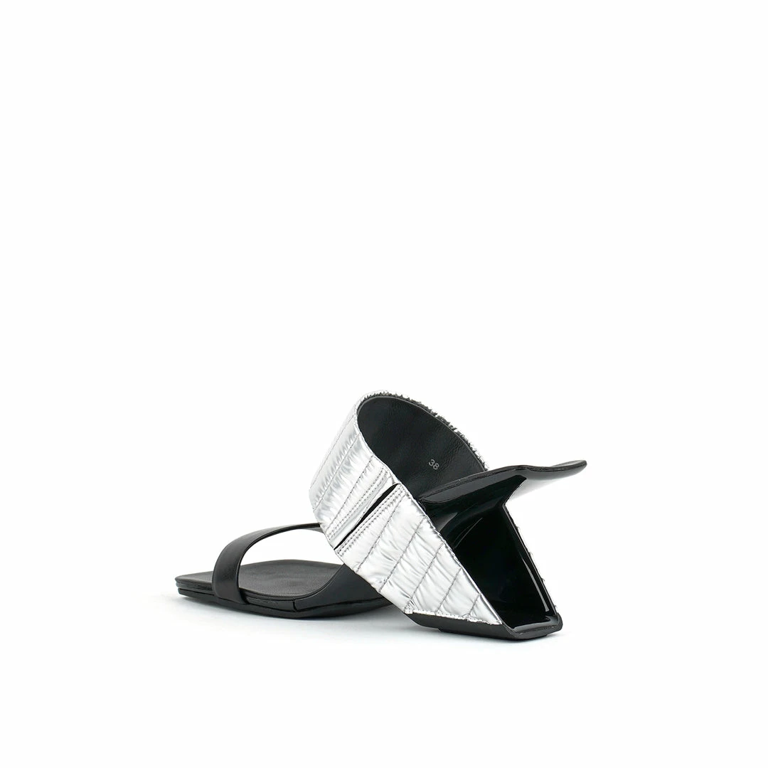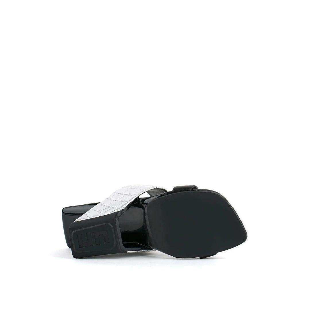 The Loop Hi is a high heel square toe sandal inspired by a loop that encompasses the foot by its upper and heel, giving the effect of floating heel. The expertly designed footbed and elastic on the inner area of the leather strap provides a comfortable and secure fit.