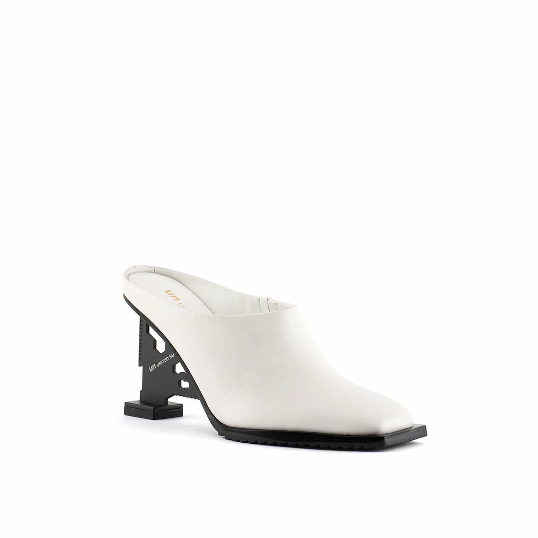 The Tool Mule is a sleek slip-on mid-heel, featuring a minimalist leather upper and the UN Tool heel. Inspired by your favorite multifunctional everyday accessories.