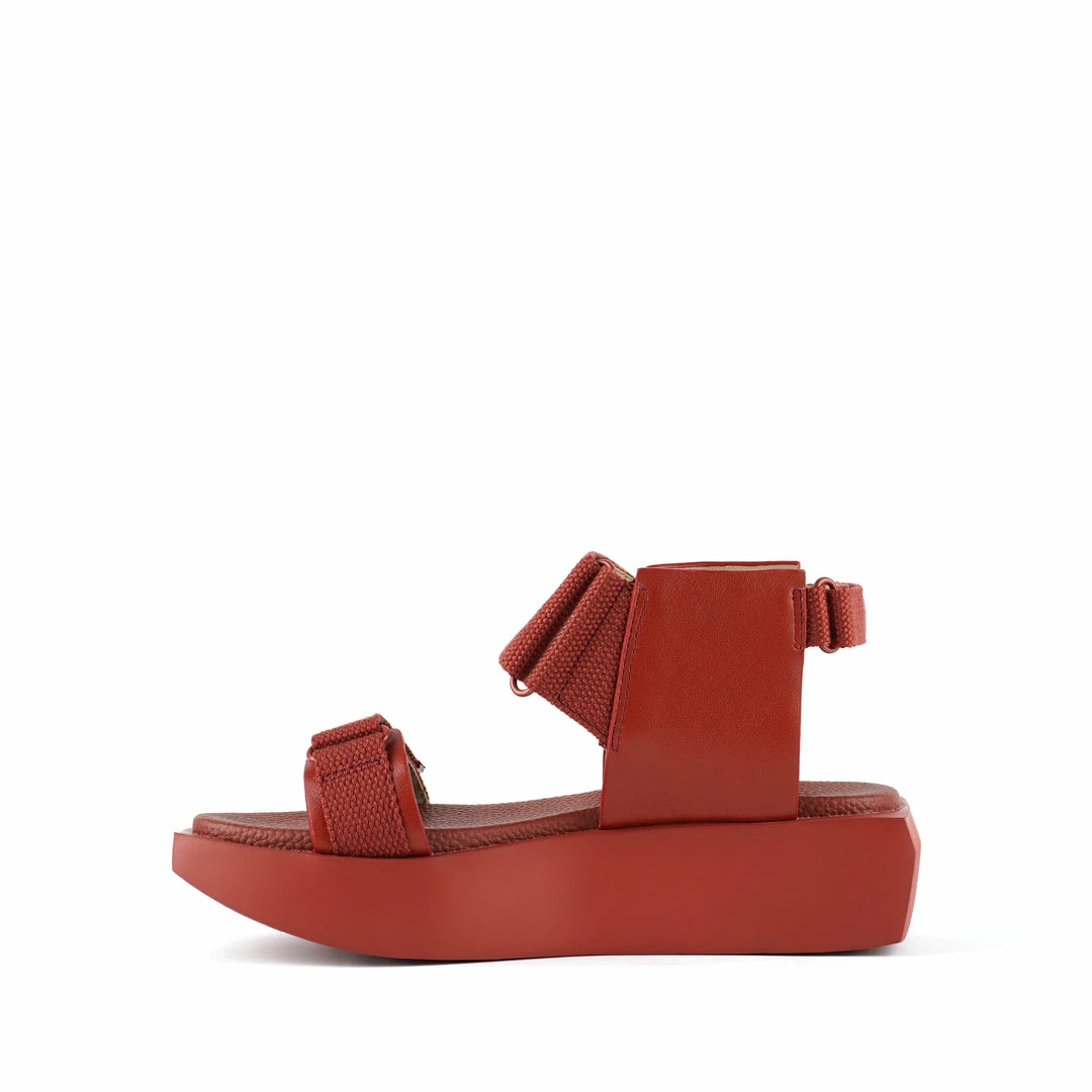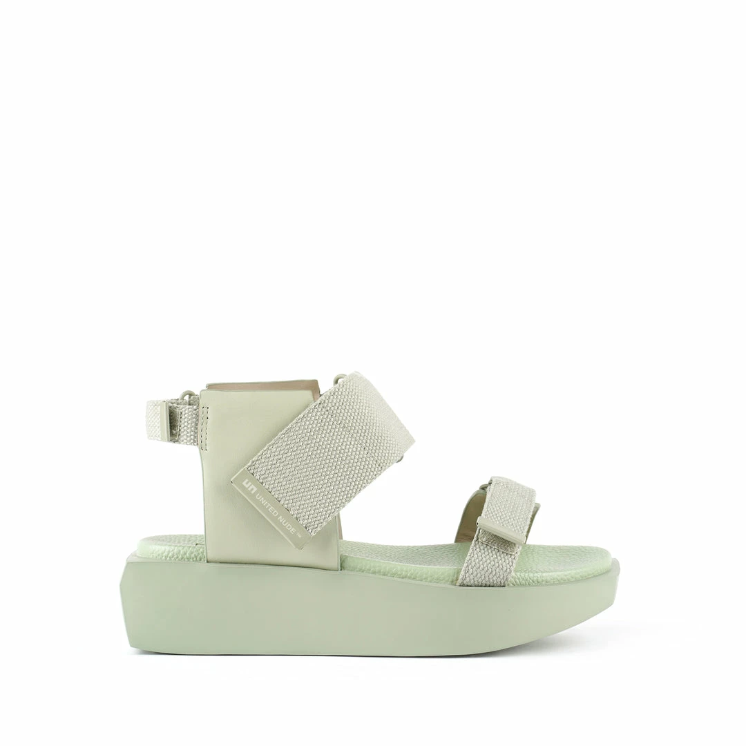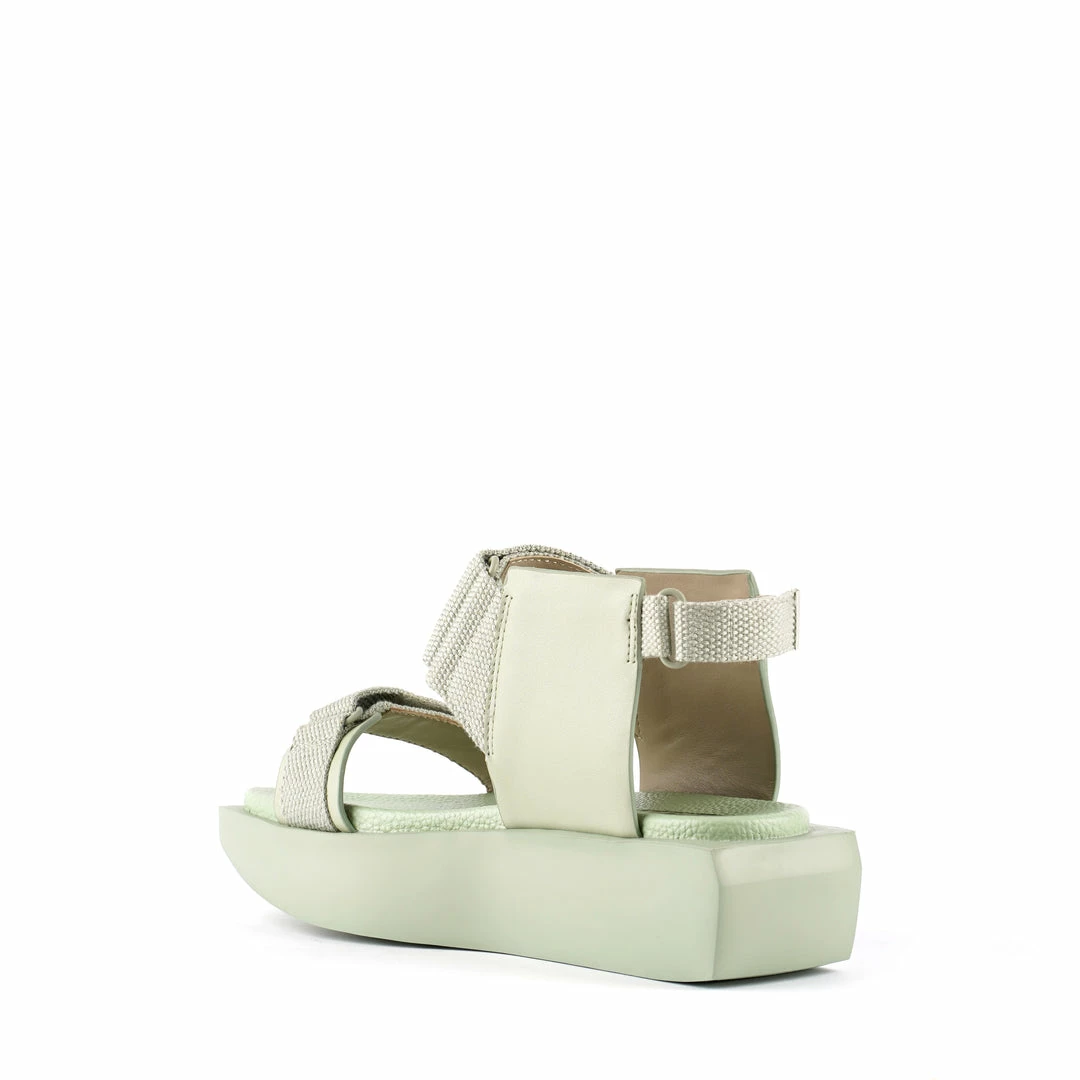 The Wa Lo is a flatform sandal featuring three adjustable straps and a minimalist rubber outsole.